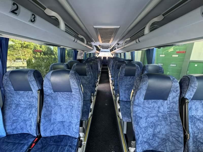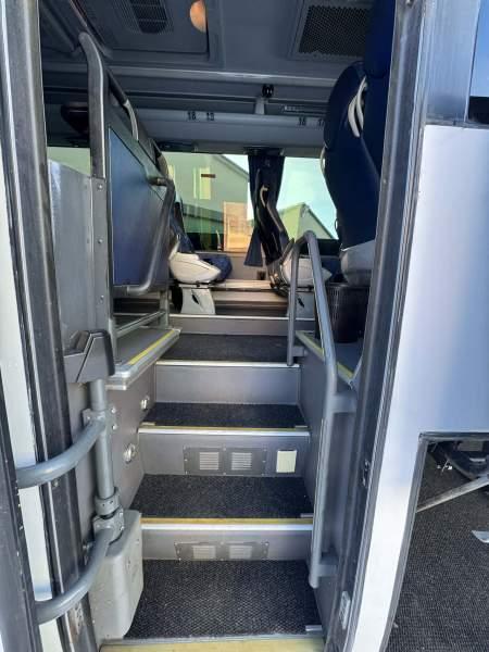 : video, lodówka, fotele odchylane, nawiewy dyszowe, ABS, ASR, retarder, CD, podnóżki, klimatyzacja, radio, regulacja wysokości nadwozia, centralny zamek, podwójne szyby boczne, wspomaganie kierownicy, elektryczne lusterka, DVD, ESP