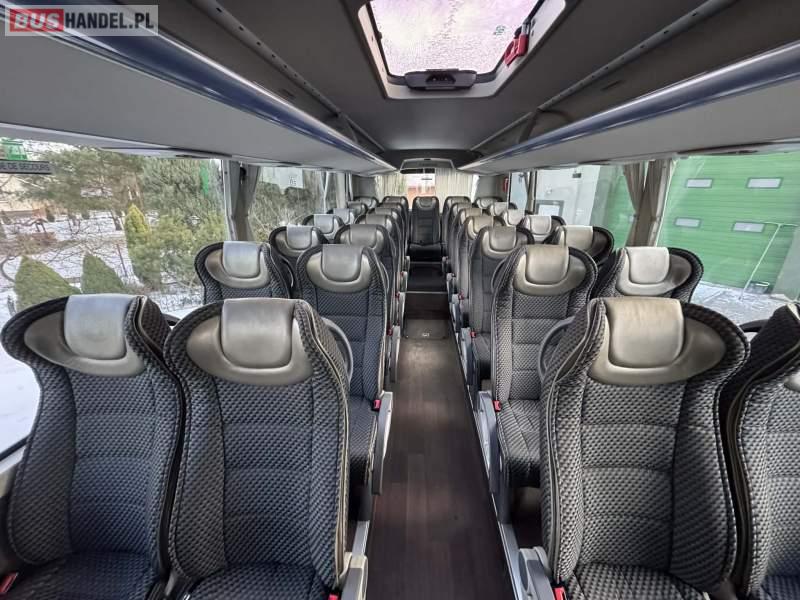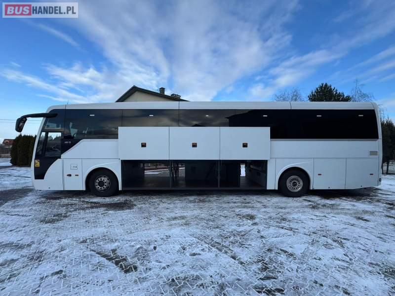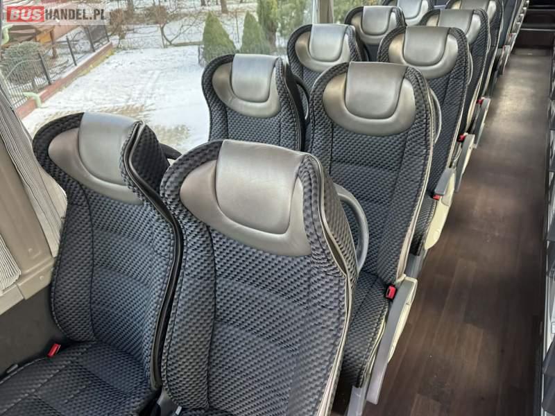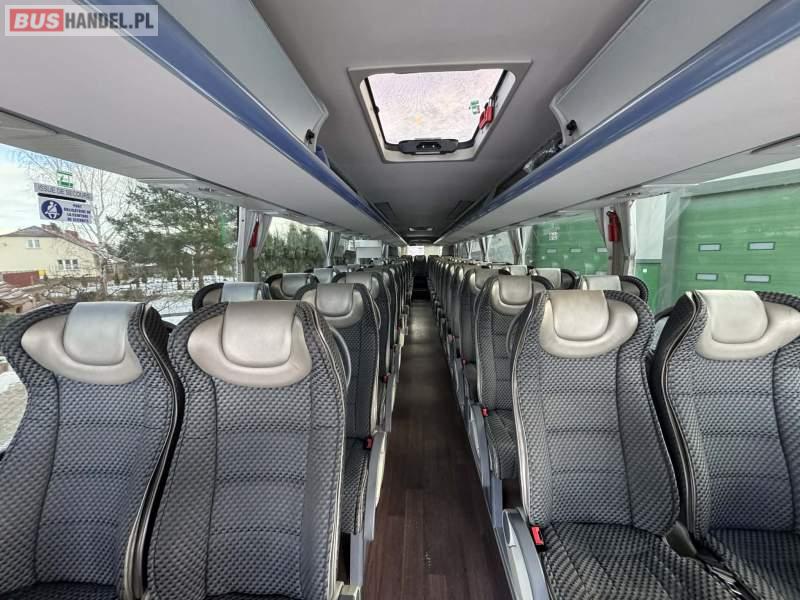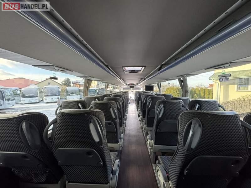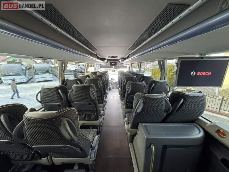 : video, WC, lodówka, caffebar, kabina sypialna, oświetlenie indywidualne, nawiewy dyszowe, siateczki, ABS, ASR, tempomat, retarder, telefon, nawigacja, CD, podnóżki, stoliczki, mikrofon, klimatyzacja, radio, regulacja wysokości nadwozia, centralny zamek, podwójne szyby boczne, wspomaganie kierownicy, elektryczne lusterka, fotele odchylane i rozsuwane, DVD, ogrzewanie stacjonarne, ESP