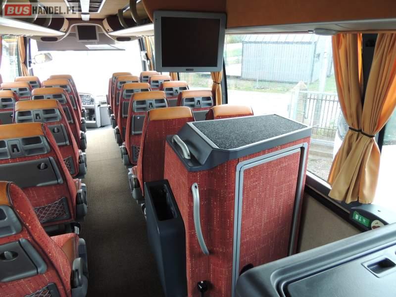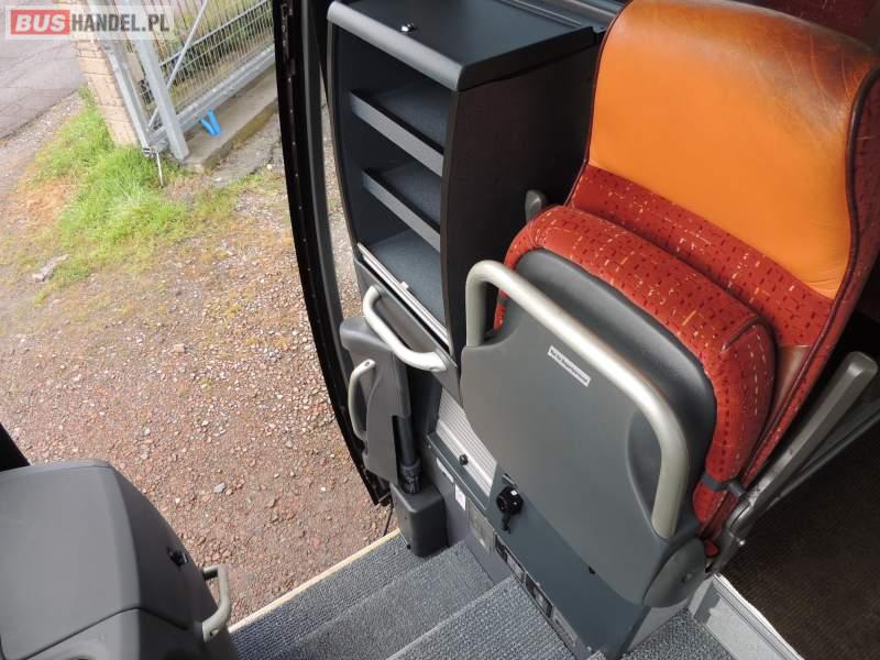 : video, WC, lodówka, caffebar, oświetlenie indywidualne, nawiewy dyszowe, ABS, ASR, tempomat, retarder, CD, podnóżki, mikrofon, klimatyzacja, radio, regulacja wysokości nadwozia, centralny zamek, podwójne szyby boczne, wspomaganie kierownicy, elektryczne lusterka, fotele odchylane i rozsuwane, DVD, ogrzewanie stacjonarne, ESP