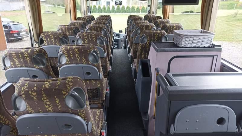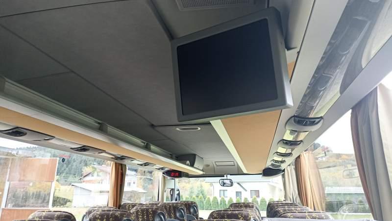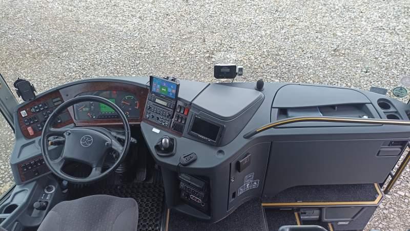 : WC, lodówka, caffebar, fotele odchylane, nawiewy dyszowe, siateczki, ABS, ASR, tempomat, retarder, CD, stoliczki, mikrofon, klimatyzacja, radio, sejf, centralny zamek, podwójne szyby boczne, elektryczne lusterka, DVD, ESP