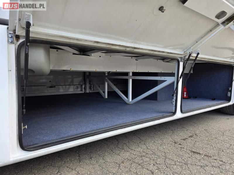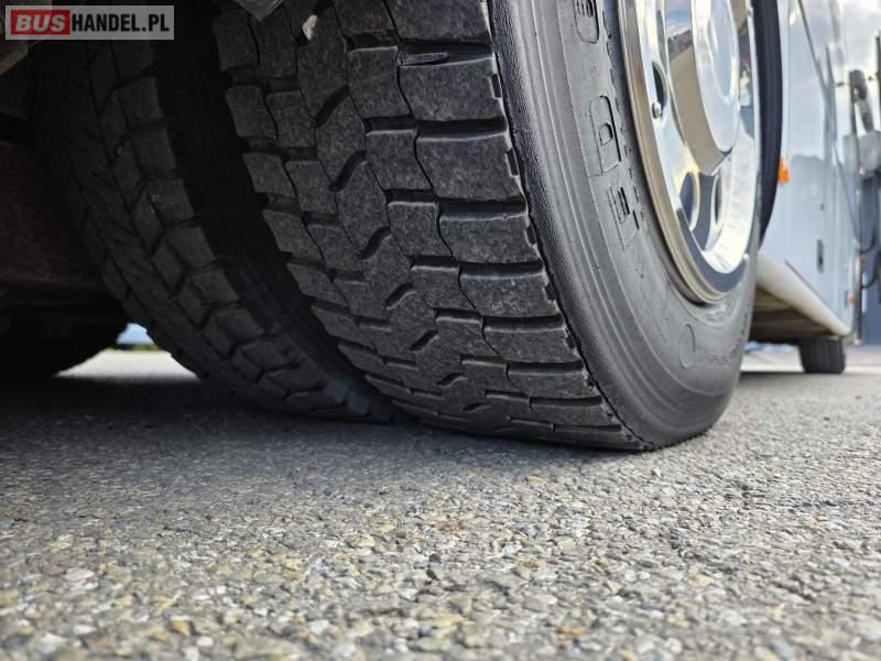 : lodówka, oświetlenie indywidualne, nawiewy dyszowe, siateczki, ABS, ASR, tempomat, retarder, podnóżki, stoliczki, fotele nieodchylane, mikrofon, klimatyzacja, radio, regulacja wysokości nadwozia, centralny zamek, podwójne szyby boczne, wspomaganie kierownicy, elektryczne lusterka, ogrzewanie stacjonarne