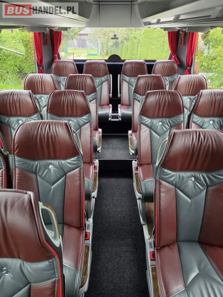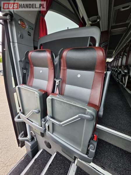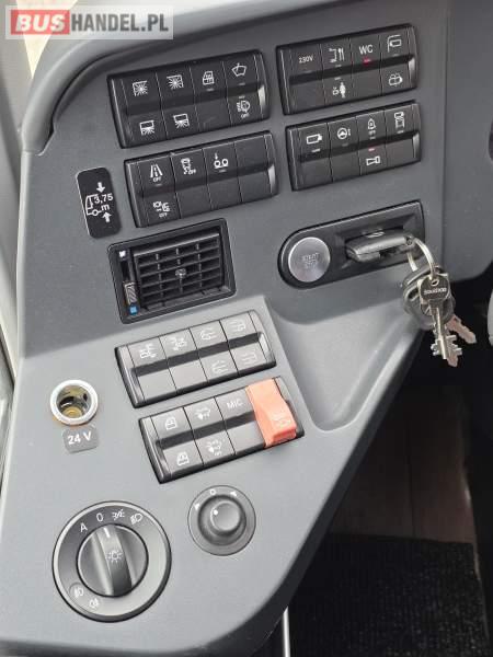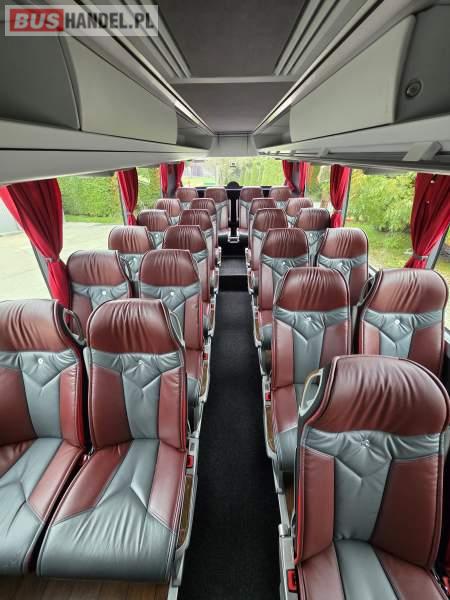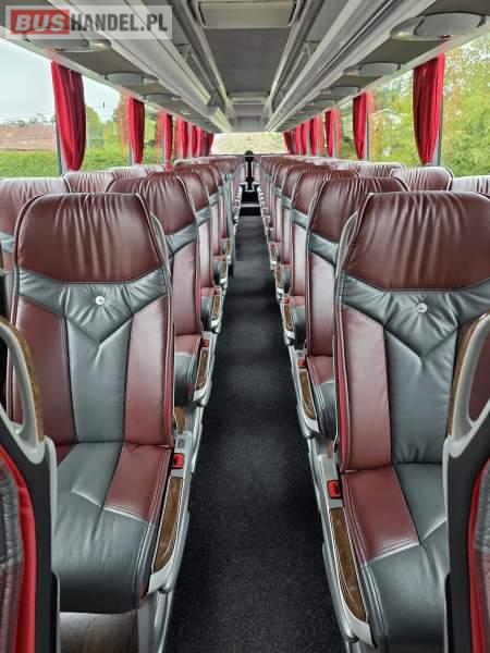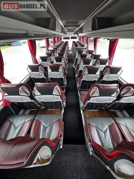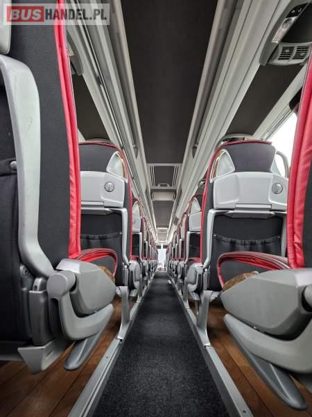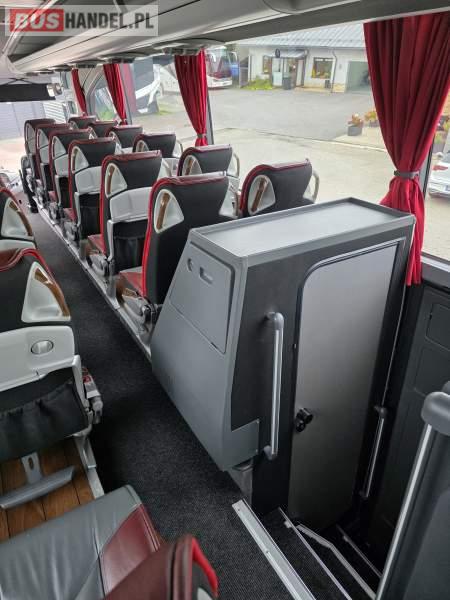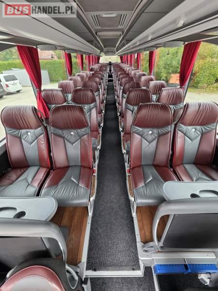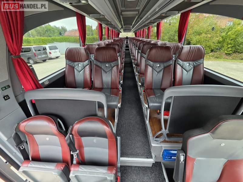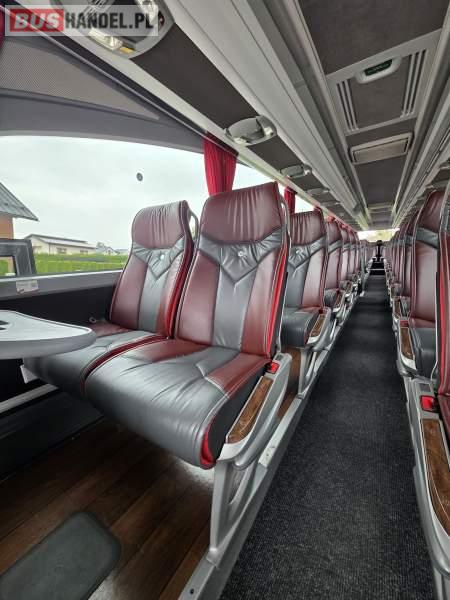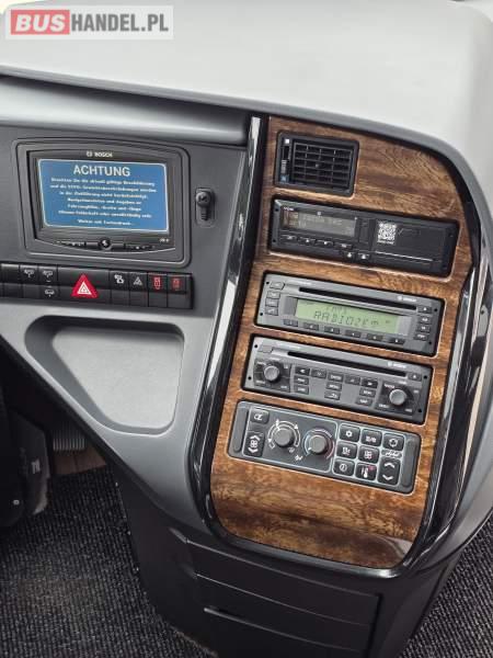 : WC, lodówka, caffebar, kabina sypialna, oświetlenie indywidualne, nawiewy dyszowe, siateczki, ABS, ASR, tempomat, retarder, podnóżki, stoliczki, mikrofon, klimatyzacja, radio, sejf, regulacja wysokości nadwozia, centralny zamek, podwójne szyby boczne, wspomaganie kierownicy, elektryczne lusterka, aluminiowe felgi, fotele odchylane i rozsuwane, DVD, ogrzewanie stacjonarne, ESP