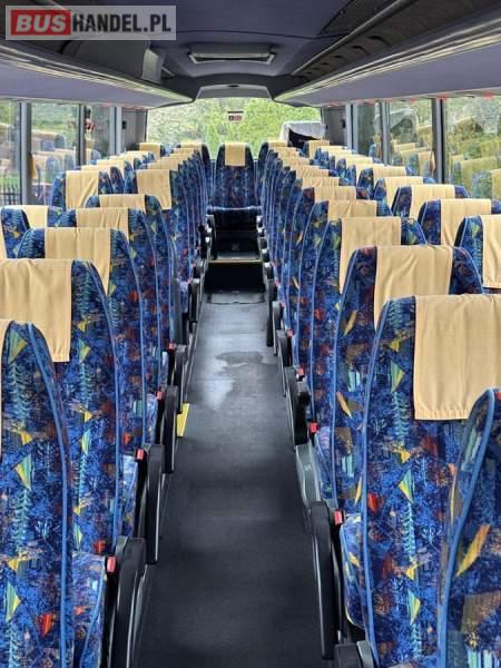 : klimatyzacja, WC, lodówka, oświetlenie indywidualne, nawiewy dyszowe, fotele odchylane, podnóżki, ABS, ASR, tempomat, retarder, CD, mikrofon, radio, regulacja wysokości nadwozia, centralny zamek, podwójne szyby boczne, wspomaganie kierownicy, elektryczne lusterka, ogrzewanie stacjonarne, DVD