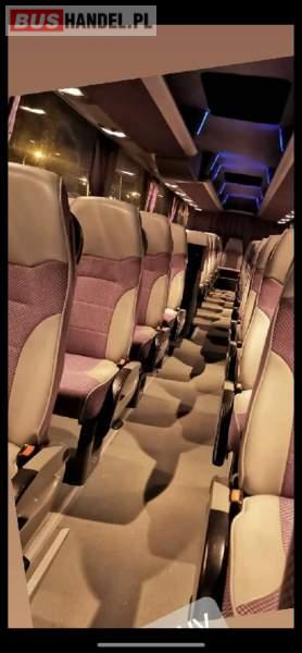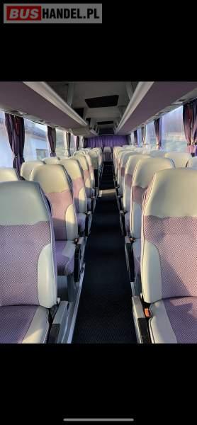 : klimatyzacja, video, WC, lodówka, kabina sypialna, oświetlenie indywidualne, nawiewy dyszowe, podnóżki, stoliczki, siateczki, ABS, tempomat, retarder, telefon, mikrofon, radio, fotele odchylane i rozsuwane, regulacja wysokości nadwozia, podwójne szyby boczne, wspomaganie kierownicy, aluminiowe felgi, ogrzewanie stacjonarne, DVD, hak holowniczy