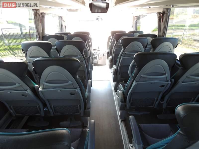 : video, WC, lodówka, oświetlenie indywidualne, nawiewy dyszowe, siateczki, ABS, ASR, tempomat, retarder, telefon, CD, podnóżki, stoliczki, mikrofon, klimatyzacja, radio, rampa dla inwalidów, regulacja wysokości nadwozia, centralny zamek, podwójne szyby boczne, wspomaganie kierownicy, elektryczne lusterka, aluminiowe felgi, fotele odchylane i rozsuwane, DVD, ogrzewanie stacjonarne, ESP
