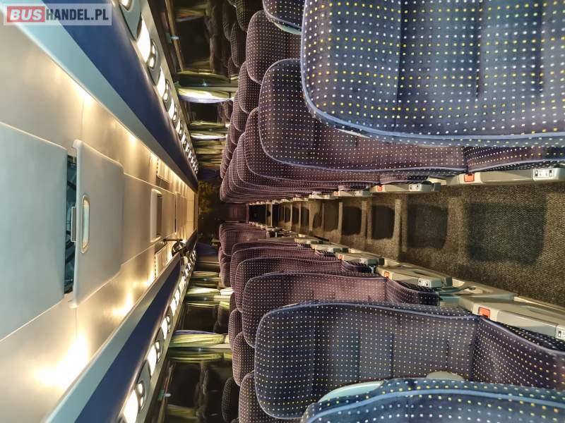 : video, WC, lodówka, caffebar, kabina sypialna, oświetlenie indywidualne, nawiewy dyszowe, siateczki, ABS, ASR, tempomat, retarder, CD, podnóżki, stoliczki, mikrofon, klimatyzacja, radio, kuchenka mikrofalowa, centralny zamek, podwójne szyby boczne, wspomaganie kierownicy, elektryczne lusterka, fotele odchylane i rozsuwane, DVD, ogrzewanie stacjonarne, ESP