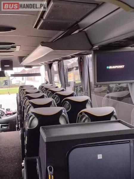 : video, WC, lodówka, caffebar, kabina sypialna, oświetlenie indywidualne, nawiewy dyszowe, ABS, ASR, tempomat, retarder, CD, podnóżki, mikrofon, klimatyzacja, radio, regulacja wysokości nadwozia, centralny zamek, podwójne szyby boczne, wspomaganie kierownicy, elektryczne lusterka, fotele odchylane i rozsuwane, DVD, ogrzewanie stacjonarne, hak holowniczy, ESP