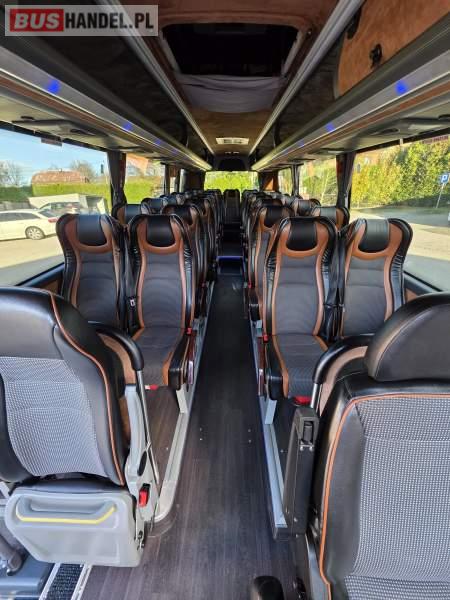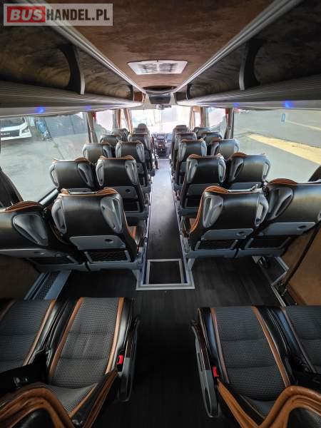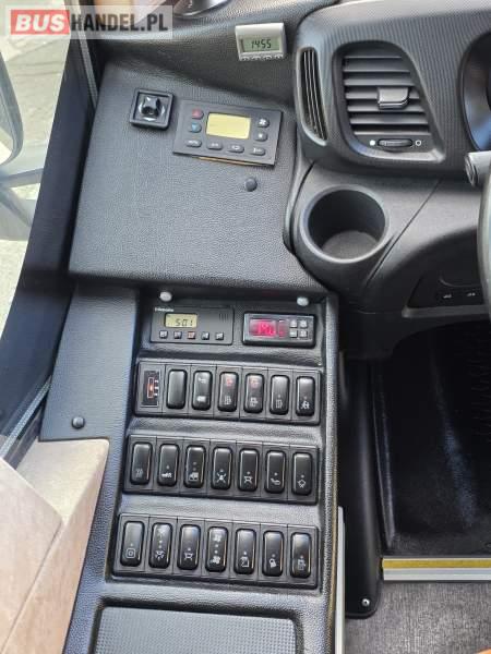 : lodówka, oświetlenie indywidualne, nawiewy dyszowe, siateczki, ABS, ASR, tempomat, retarder, podnóżki, stoliczki, mikrofon, klimatyzacja, radio, regulacja wysokości nadwozia, centralny zamek, podwójne szyby boczne, wspomaganie kierownicy, elektryczne lusterka, fotele odchylane i rozsuwane, DVD, ogrzewanie stacjonarne