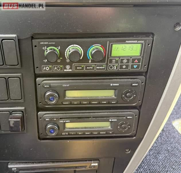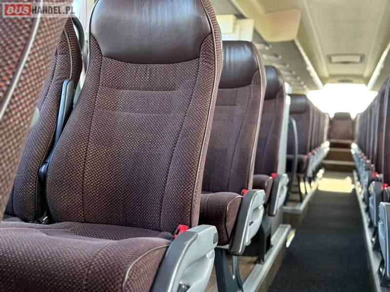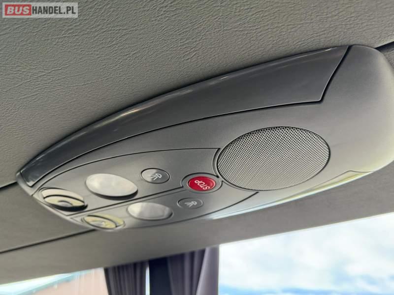 : video, WC, lodówka, oświetlenie indywidualne, nawiewy dyszowe, siateczki, ABS, ASR, tempomat, retarder, CD, podnóżki, stoliczki, mikrofon, klimatyzacja, radio, regulacja wysokości nadwozia, centralny zamek, podwójne szyby boczne, wspomaganie kierownicy, elektryczne lusterka, aluminiowe felgi, fotele odchylane i rozsuwane, DVD, ogrzewanie stacjonarne, ESP