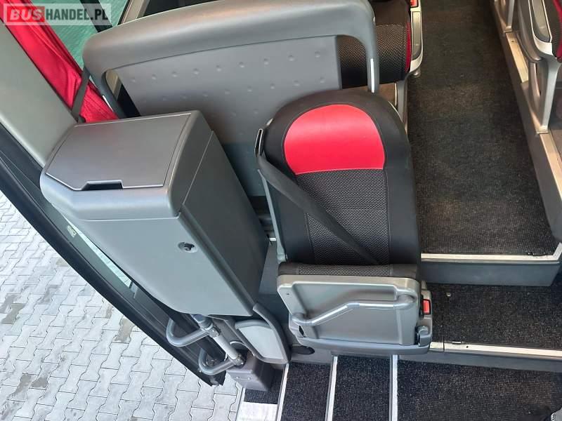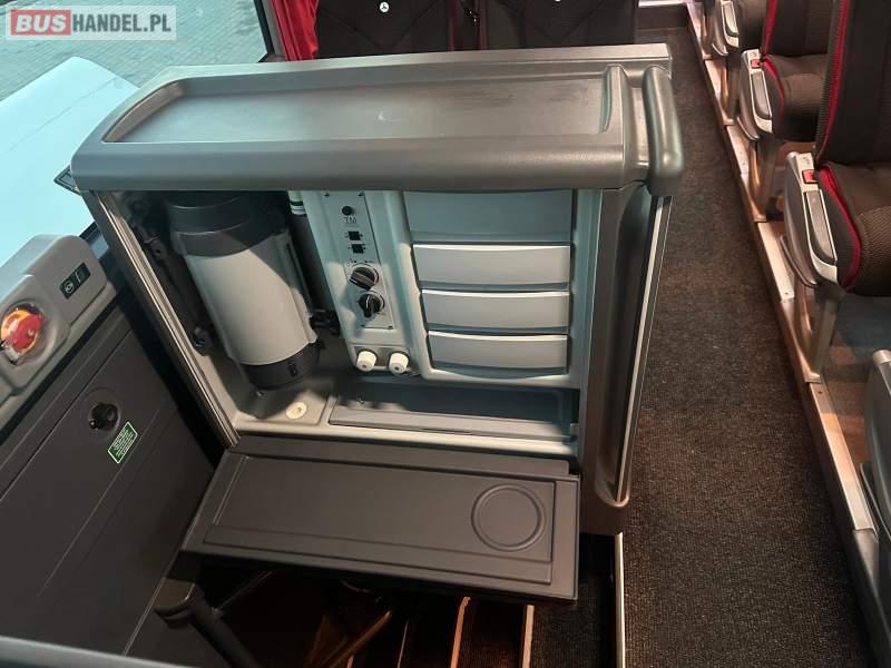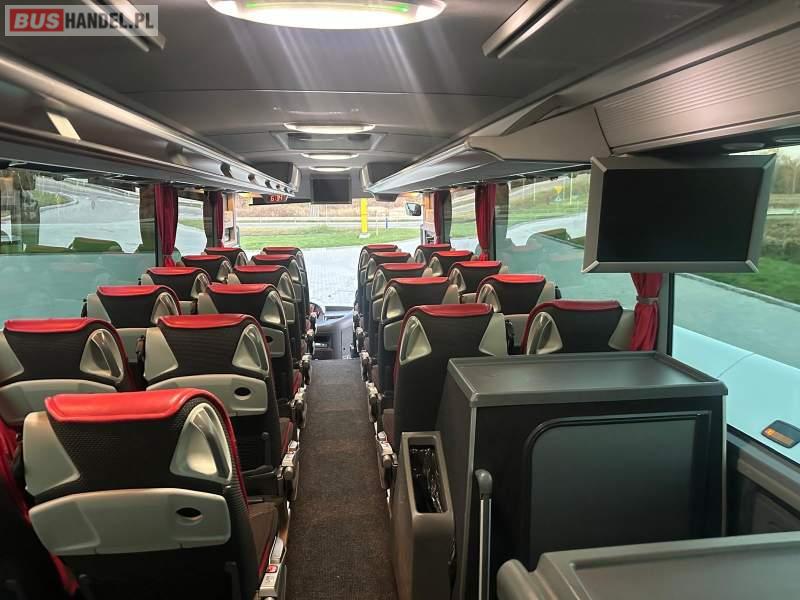: video, WC, lodówka, caffebar, kabina sypialna, fotele odchylane, oświetlenie indywidualne, nawiewy dyszowe, siateczki, ABS, ASR, tempomat, retarder, telefon, nawigacja, CD, podnóżki, stoliczki, mikrofon, klimatyzacja, radio, wyświetlacz matrix, sejf, regulacja wysokości nadwozia, centralny zamek, podwójne szyby boczne, wspomaganie kierownicy, elektryczne lusterka, fotele odchylane i rozsuwane, DVD, ogrzewanie stacjonarne, hak holowniczy, ESP