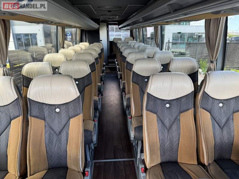 : klimatyzacja, WC, lodówka, caffebar, oświetlenie indywidualne, nawiewy dyszowe, fotele odchylane, podnóżki, stoliczki, siateczki, ABS, ASR, tempomat, retarder, CD, mikrofon, radio, fotele odchylane i rozsuwane, regulacja wysokości nadwozia, centralny zamek, podwójne szyby boczne, wspomaganie kierownicy, elektryczne lusterka, ogrzewanie stacjonarne, DVD, hak holowniczy, ESP