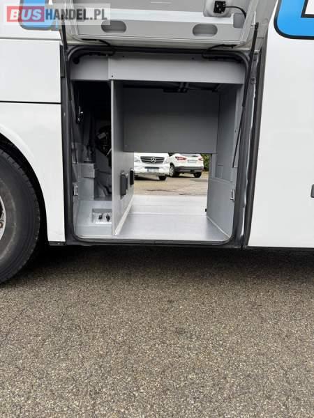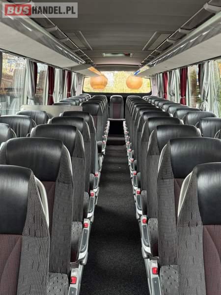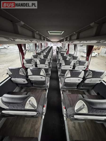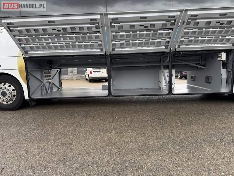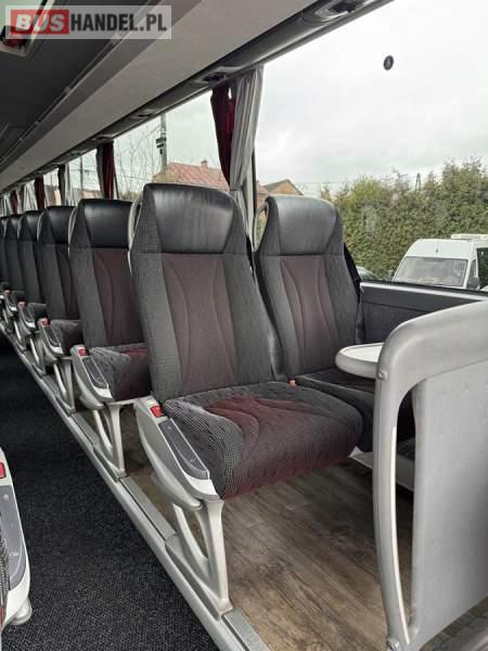 : klimatyzacja, WC, lodówka, caffebar, kabina sypialna, oświetlenie indywidualne, nawiewy dyszowe, podnóżki, stoliczki, siateczki, ABS, ASR, tempomat, retarder, mikrofon, radio, fotele odchylane i rozsuwane, sejf, regulacja wysokości nadwozia, centralny zamek, podwójne szyby boczne, wspomaganie kierownicy, aluminiowe felgi, elektryczne lusterka, ogrzewanie stacjonarne, DVD, ESP