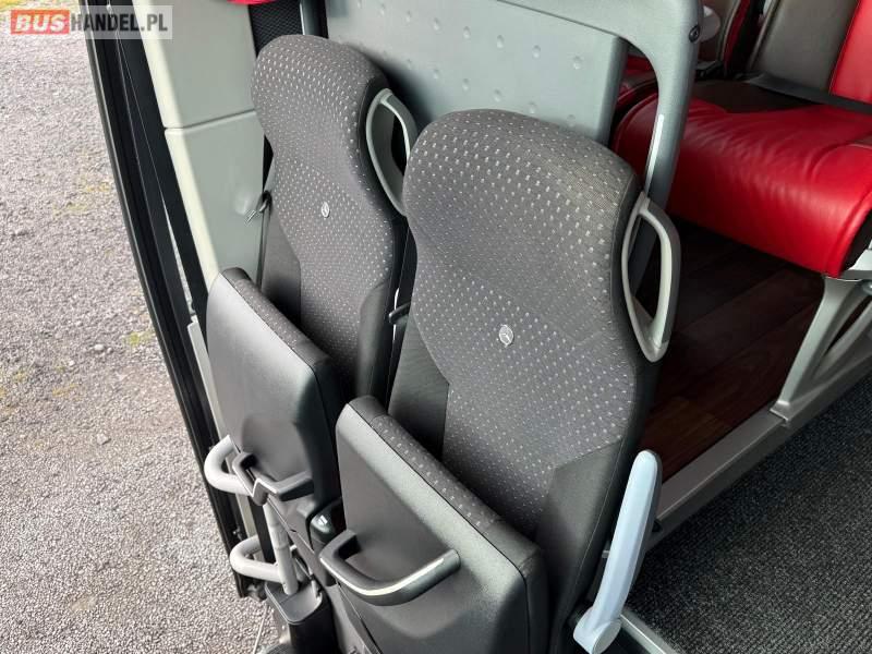 : video, WC, lodówka, kabina sypialna, oświetlenie indywidualne, nawiewy dyszowe, podnóżki, stoliczki, siateczki, ABS, ASR, tempomat, retarder, nawigacja, CD, mikrofon, radio, fotele odchylane i rozsuwane, sejf, regulacja wysokości nadwozia, centralny zamek, podwójne szyby boczne, wspomaganie kierownicy, aluminiowe felgi, elektryczne lusterka, ogrzewanie stacjonarne, DVD, hak holowniczy, ESP