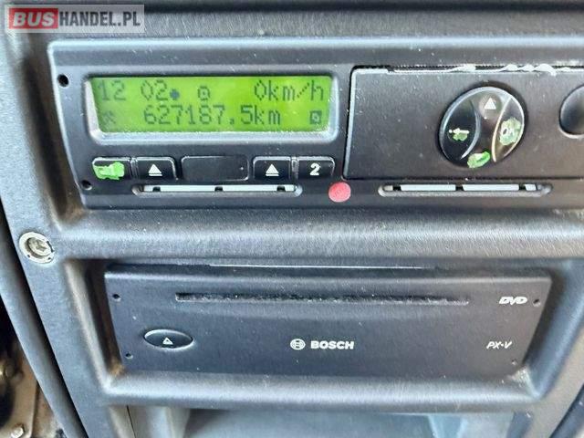 : klimatyzacja, WC, lodówka, oświetlenie indywidualne, podnóżki, ABS, ASR, tempomat, retarder, CD, mikrofon, radio, fotele odchylane i rozsuwane, regulacja wysokości nadwozia, centralny zamek, podwójne szyby boczne, wspomaganie kierownicy, elektryczne lusterka, ogrzewanie stacjonarne, DVD, ESP