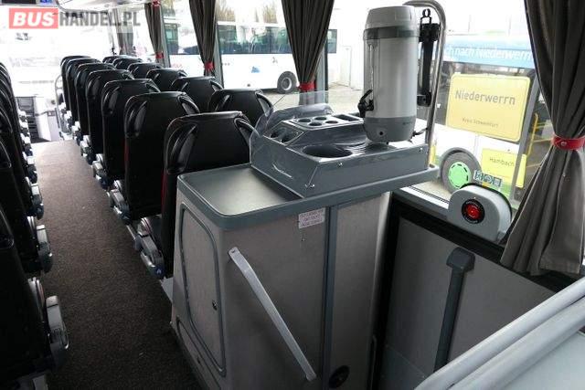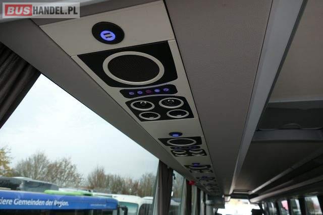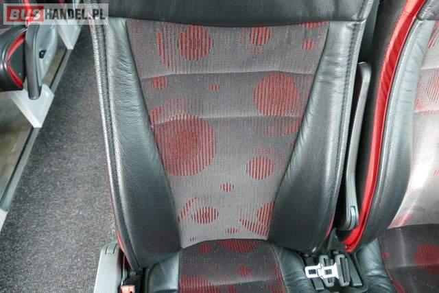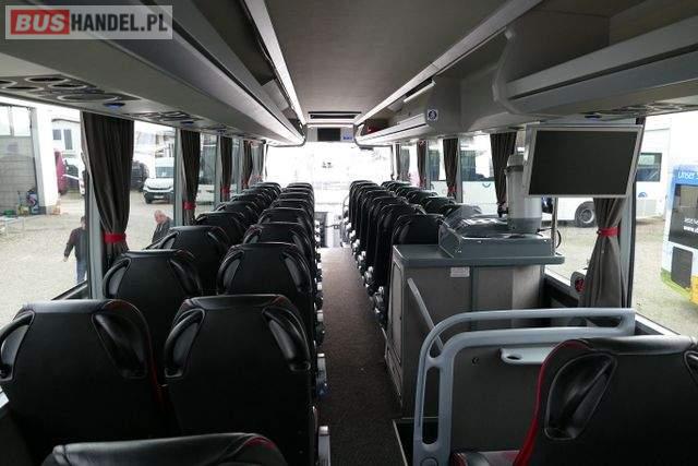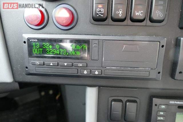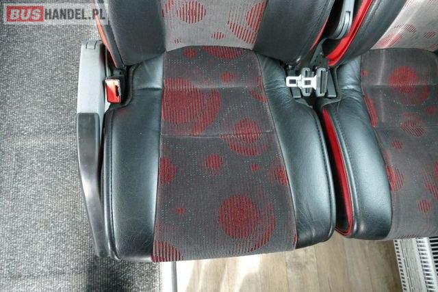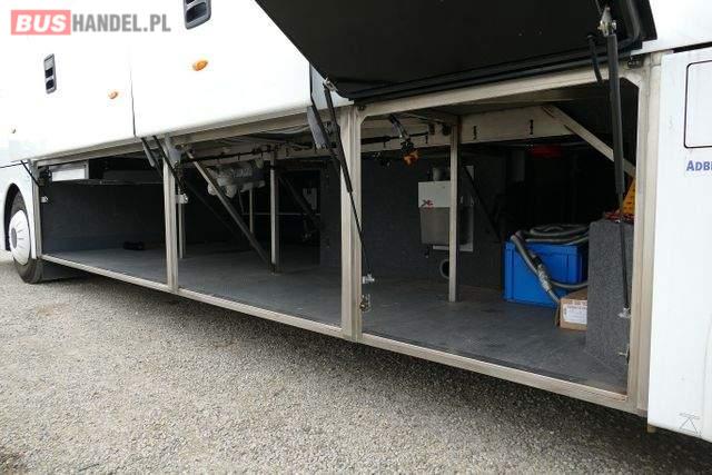 : klimatyzacja, WC, lodówka, caffebar, oświetlenie indywidualne, podnóżki, ABS, ASR, tempomat, retarder, CD, mikrofon, radio, fotele odchylane i rozsuwane, regulacja wysokości nadwozia, centralny zamek, podwójne szyby boczne, wspomaganie kierownicy, elektryczne lusterka, ogrzewanie stacjonarne, DVD, ESP