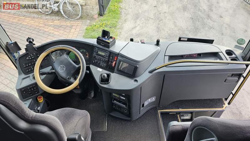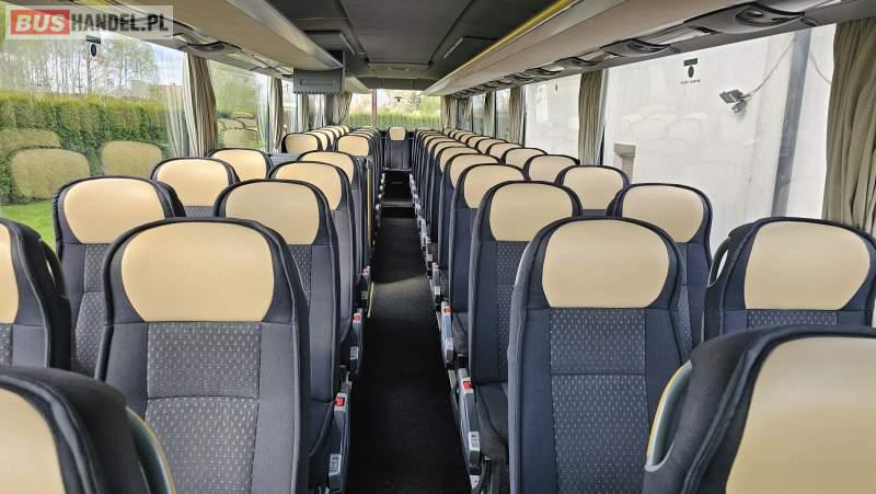 : klimatyzacja, WC, lodówka, caffebar, oświetlenie indywidualne, nawiewy dyszowe, podnóżki, stoliczki, siateczki, ABS, ASR, tempomat, retarder, mikrofon, fotele odchylane i rozsuwane, sejf, regulacja wysokości nadwozia, podwójne szyby boczne, wspomaganie kierownicy, ogrzewanie stacjonarne, ESP
