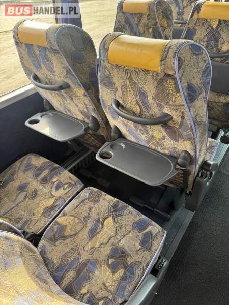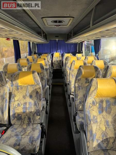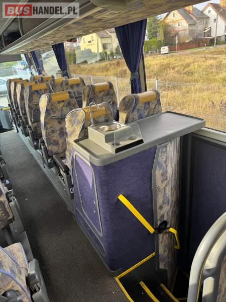 : klimatyzacja, WC, lodówka, kabina sypialna, oświetlenie indywidualne, nawiewy dyszowe, fotele odchylane, podnóżki, stoliczki, siateczki, ABS, ASR, tempomat, retarder, CD, mikrofon, radio, regulacja wysokości nadwozia, podwójne szyby boczne, wspomaganie kierownicy, elektryczne lusterka, ogrzewanie stacjonarne, DVD, ESP