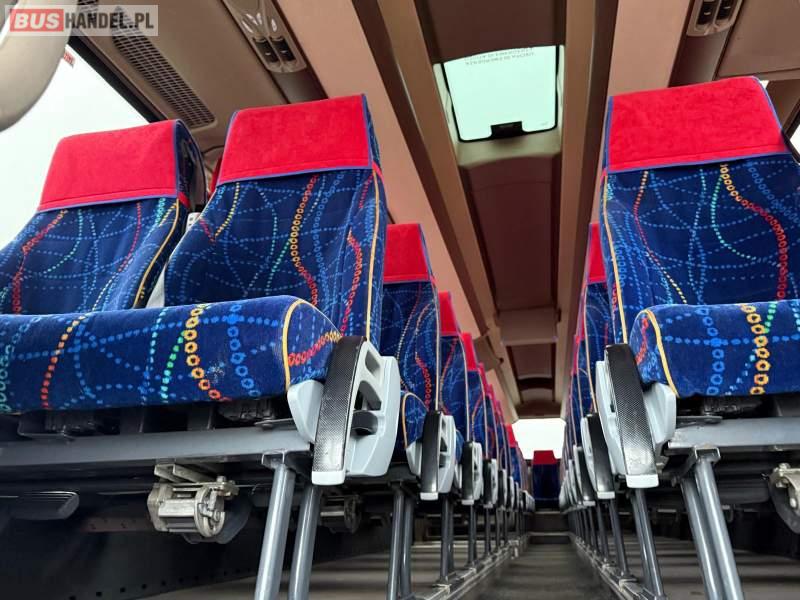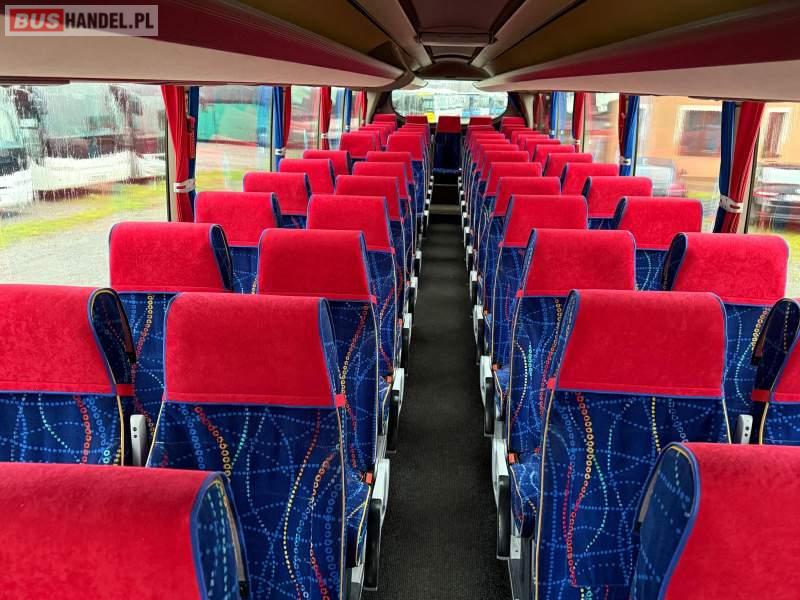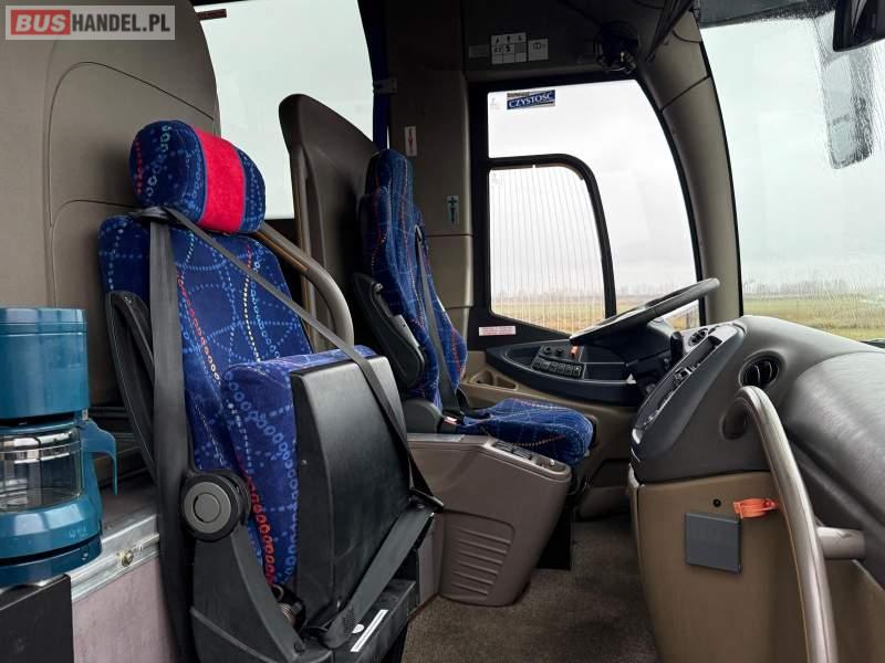 : klimatyzacja, video, lodówka, oświetlenie indywidualne, nawiewy dyszowe, fotele odchylane, podnóżki, siateczki, ABS, ASR, tempomat, retarder, CD, mikrofon, radio, regulacja wysokości nadwozia, centralny zamek, podwójne szyby boczne, wspomaganie kierownicy, elektryczne lusterka, ogrzewanie stacjonarne, DVD, ESP