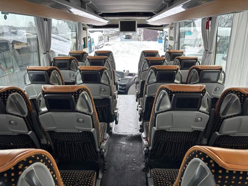 : WC, lodówka, caffebar, kabina sypialna, fotele odchylane, oświetlenie indywidualne, nawiewy dyszowe, siateczki, ABS, ASR, retarder, CD, podnóżki, mikrofon, klimatyzacja, kuchenka mikrofalowa, rampa dla inwalidów, sejf, regulacja wysokości nadwozia, centralny zamek, podwójne szyby boczne, elektryczne lusterka, aluminiowe felgi, fotele odchylane i rozsuwane, DVD, ogrzewanie stacjonarne, hak holowniczy, ESP
