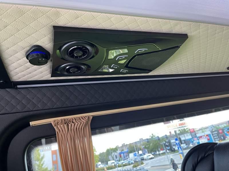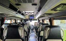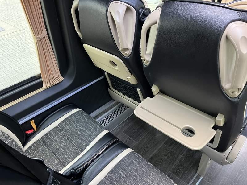 : video, fotele odchylane, oświetlenie indywidualne, nawiewy dyszowe, siateczki, ABS, ASR, tempomat, nawigacja, CD, stoliczki, mikrofon, klimatyzacja, radio, centralny zamek, podwójne szyby boczne, elektryczne lusterka, fotele odchylane i rozsuwane, DVD, ogrzewanie stacjonarne, hak holowniczy, ESP