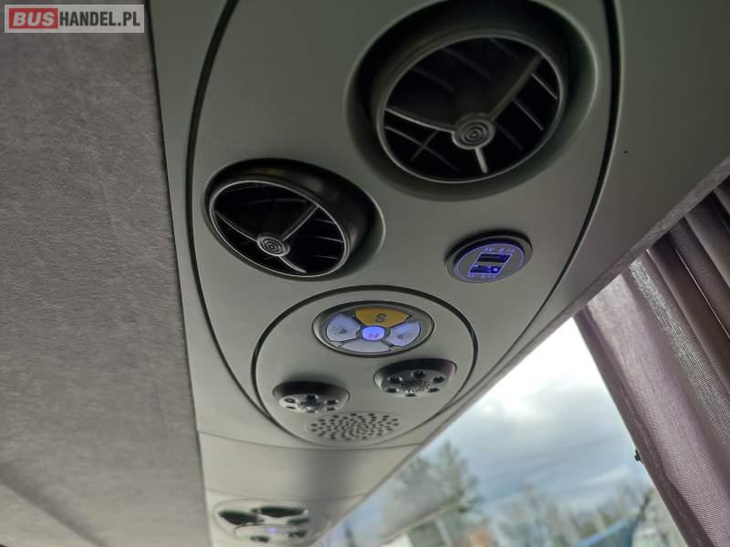 : video, WC, lodówka, caffebar, kabina sypialna, oświetlenie indywidualne, nawiewy dyszowe, siateczki, ABS, ASR, tempomat, retarder, CD, podnóżki, mikrofon, klimatyzacja, radio, sejf, regulacja wysokości nadwozia, centralny zamek, podwójne szyby boczne, wspomaganie kierownicy, elektryczne lusterka, fotele odchylane i rozsuwane, DVD, ogrzewanie stacjonarne, hak holowniczy, ESP