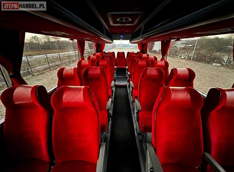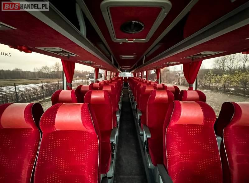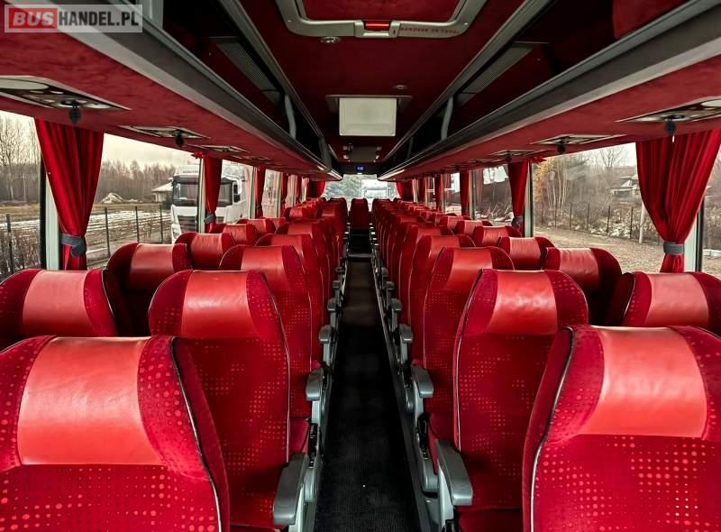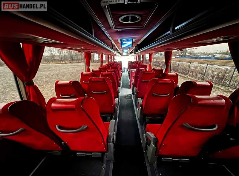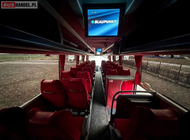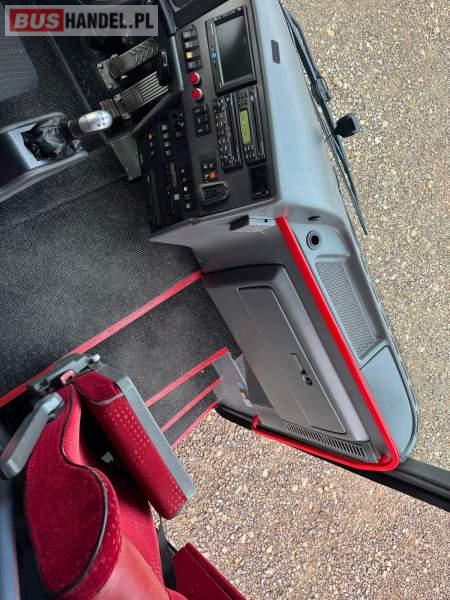 : video, WC, lodówka, kabina sypialna, fotele odchylane, oświetlenie indywidualne, nawiewy dyszowe, ABS, ASR, tempomat, retarder, CD, podnóżki, mikrofon, klimatyzacja, radio, regulacja wysokości nadwozia, podwójne szyby boczne, wspomaganie kierownicy, elektryczne lusterka, DVD, ogrzewanie stacjonarne, ESP
