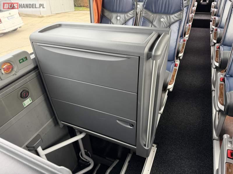 : WC, lodówka, caffebar, kabina sypialna, oświetlenie indywidualne, nawiewy dyszowe, siateczki, ABS, ASR, tempomat, retarder, podnóżki, stoliczki, mikrofon, klimatyzacja, radio, sejf, regulacja wysokości nadwozia, centralny zamek, podwójne szyby boczne, wspomaganie kierownicy, elektryczne lusterka, aluminiowe felgi, fotele odchylane i rozsuwane, DVD, ogrzewanie stacjonarne, ESP