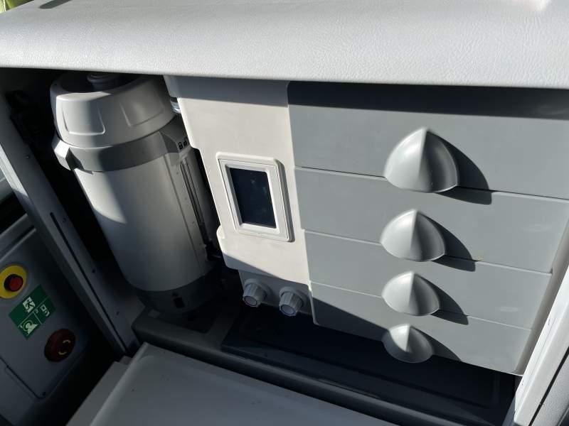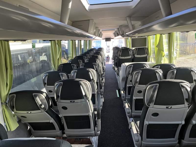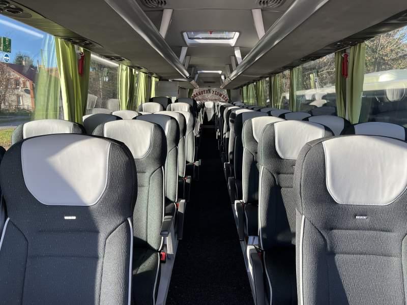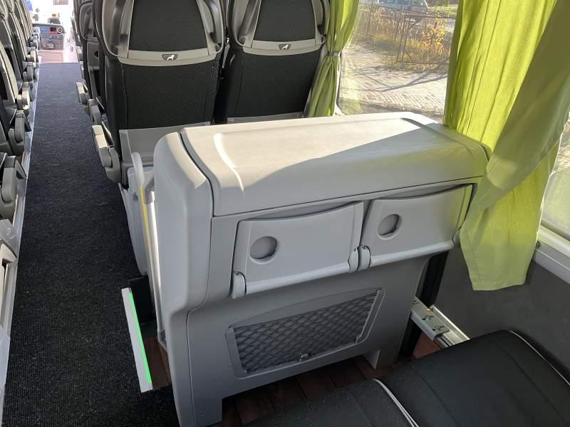 : klimatyzacja, video, WC, lodówka, caffebar, kabina sypialna, oświetlenie indywidualne, nawiewy dyszowe, fotele odchylane, podnóżki, stoliczki, siateczki, ABS, ASR, tempomat, retarder, telefon, nawigacja, CD, mikrofon, radio, fotele odchylane i rozsuwane, sejf, regulacja wysokości nadwozia, centralny zamek, podwójne szyby boczne, wspomaganie kierownicy, aluminiowe felgi, elektryczne lusterka, ogrzewanie stacjonarne, DVD, hak holowniczy, ESP