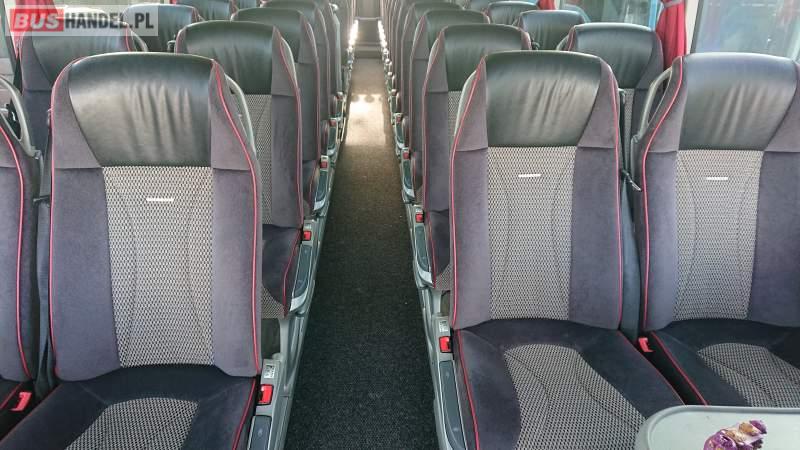 : WC, lodówka, caffebar, kabina sypialna, fotele odchylane, oświetlenie indywidualne, nawiewy dyszowe, ABS, ASR, retarder, podnóżki, mikrofon, klimatyzacja, radio, sejf, regulacja wysokości nadwozia, centralny zamek, podwójne szyby boczne, elektryczne lusterka, aluminiowe felgi, fotele odchylane i rozsuwane, DVD, ogrzewanie stacjonarne, hak holowniczy, ESP