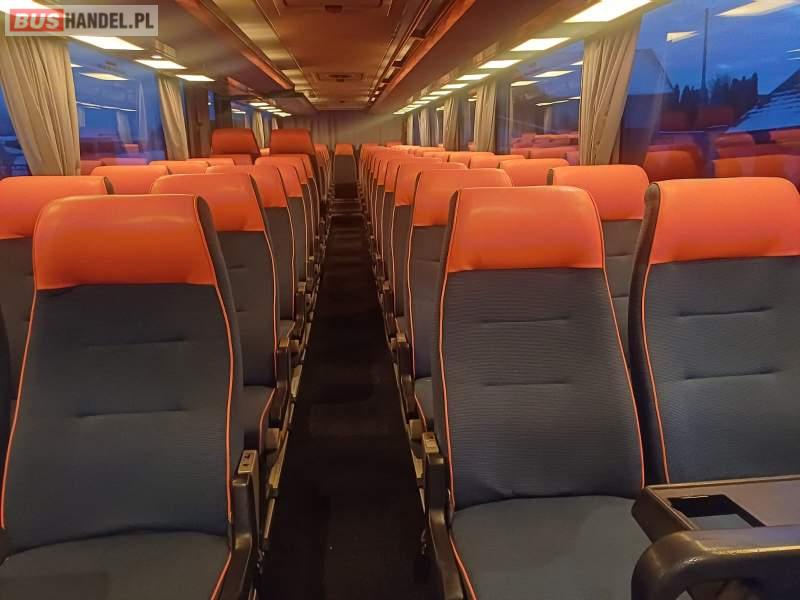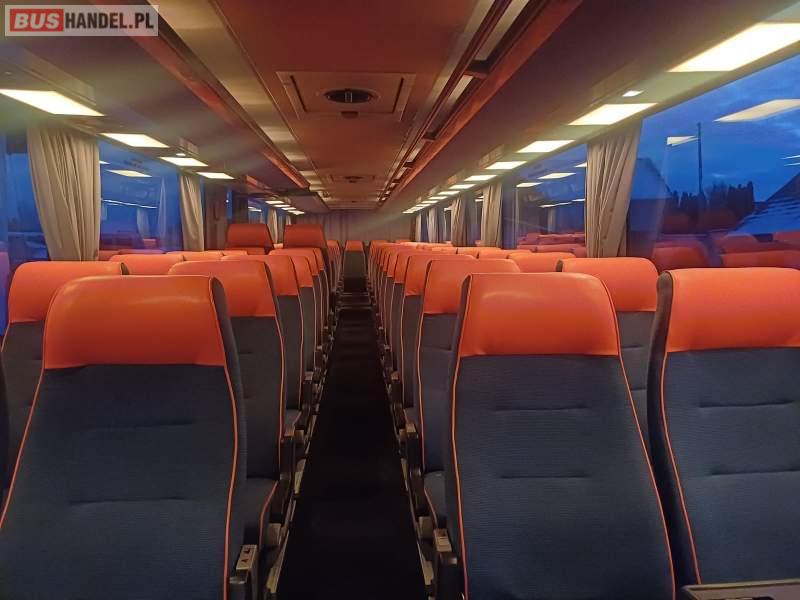 : video, lodówka, caffebar, fotele odchylane, oświetlenie indywidualne, nawiewy dyszowe, siateczki, ABS, tempomat, retarder, podnóżki, mikrofon, klimatyzacja, radio, regulacja wysokości nadwozia, podwójne szyby boczne, wspomaganie kierownicy, elektryczne lusterka, ogrzewanie stacjonarne, hak holowniczy, ESP