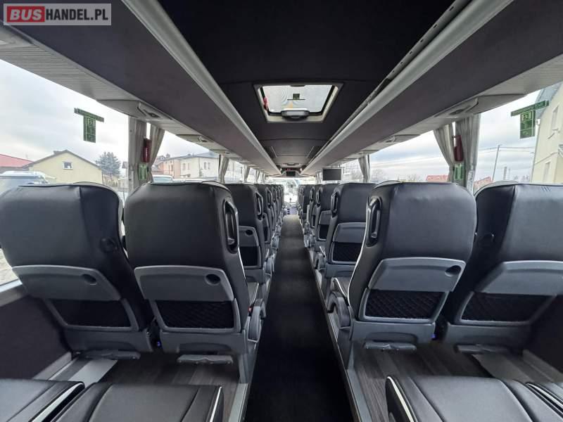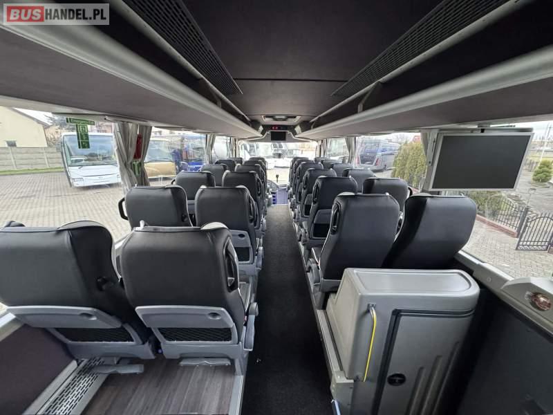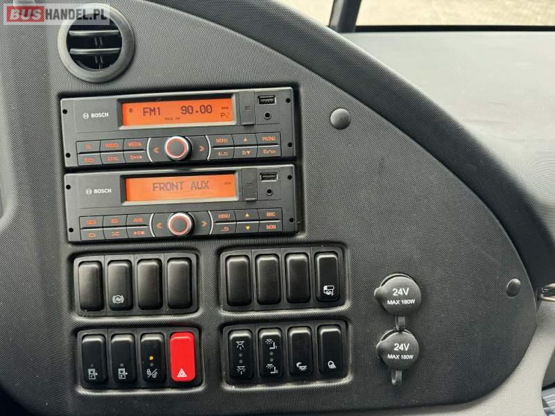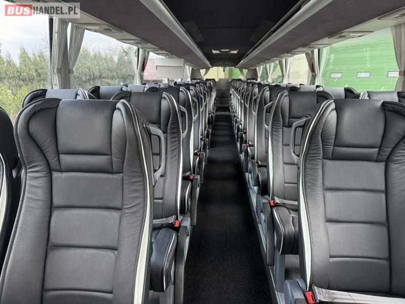 : klimatyzacja, video, WC, lodówka, kabina sypialna, oświetlenie indywidualne, nawiewy dyszowe, podnóżki, stoliczki, siateczki, ABS, ASR, tempomat, retarder, telefon, CD, mikrofon, radio, fotele odchylane i rozsuwane, kuchenka mikrofalowa, regulacja wysokości nadwozia, centralny zamek, podwójne szyby boczne, wspomaganie kierownicy, aluminiowe felgi, elektryczne lusterka, ogrzewanie stacjonarne, DVD, ESP