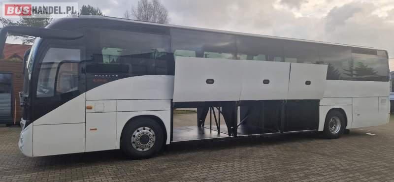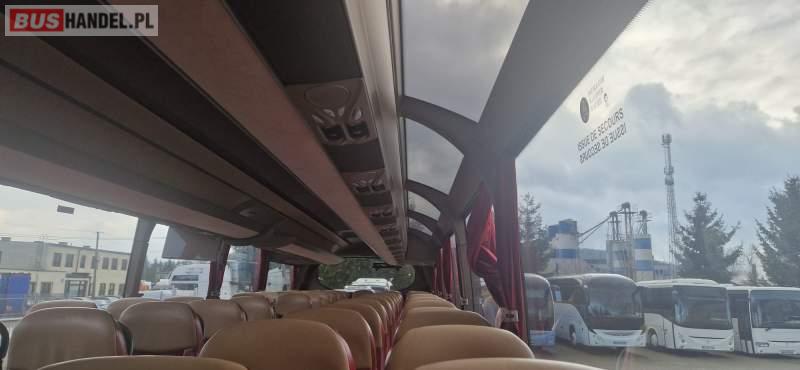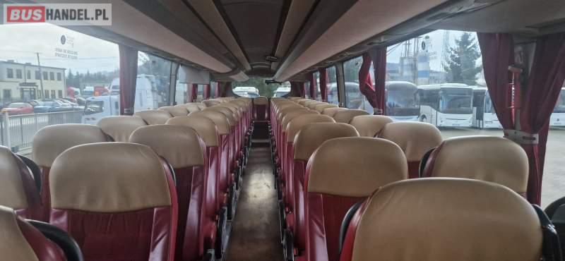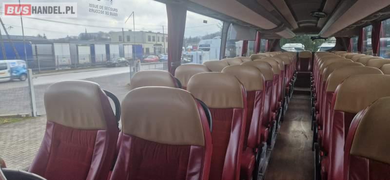 : video, lodówka, caffebar, fotele odchylane, oświetlenie indywidualne, siateczki, ABS, ASR, tempomat, retarder, CD, podnóżki, stoliczki, mikrofon, klimatyzacja, radio, regulacja wysokości nadwozia, centralny zamek, podwójne szyby boczne, wspomaganie kierownicy, elektryczne lusterka, aluminiowe felgi, DVD, ogrzewanie stacjonarne, ESP
