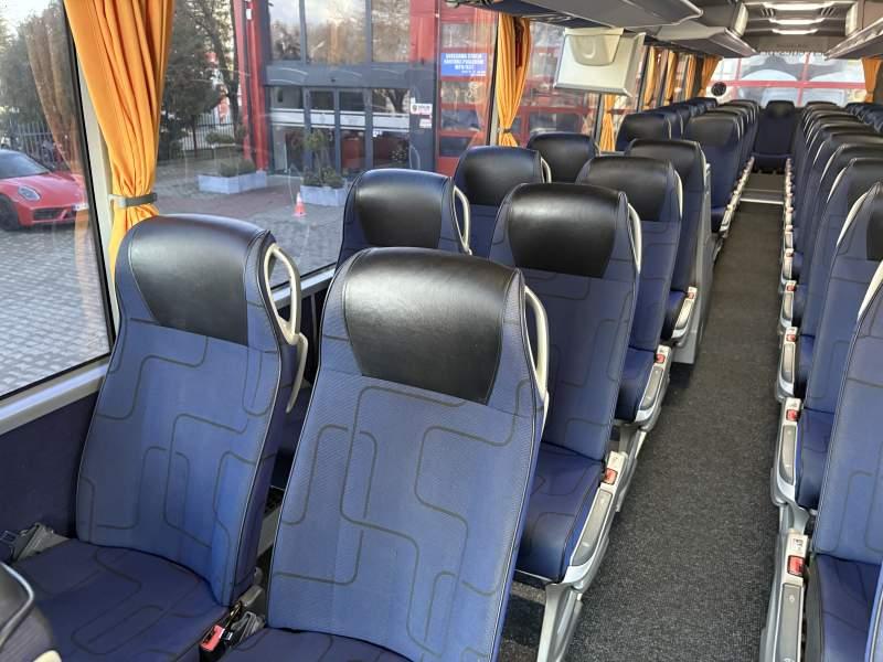 : video, lodówka, tempomat, retarder, podnóżki, mikrofon, radio, fotele odchylane i rozsuwane, hak holowniczy