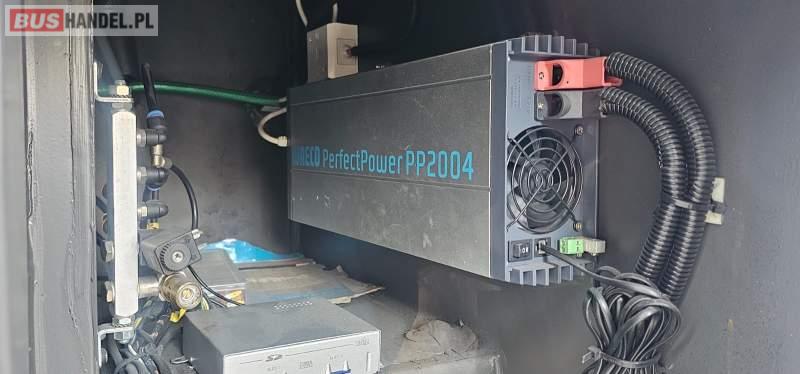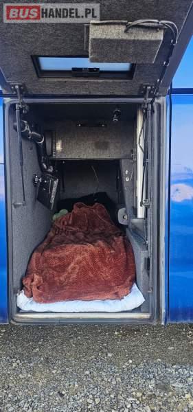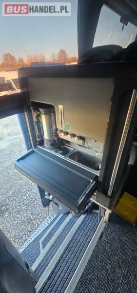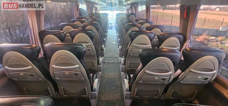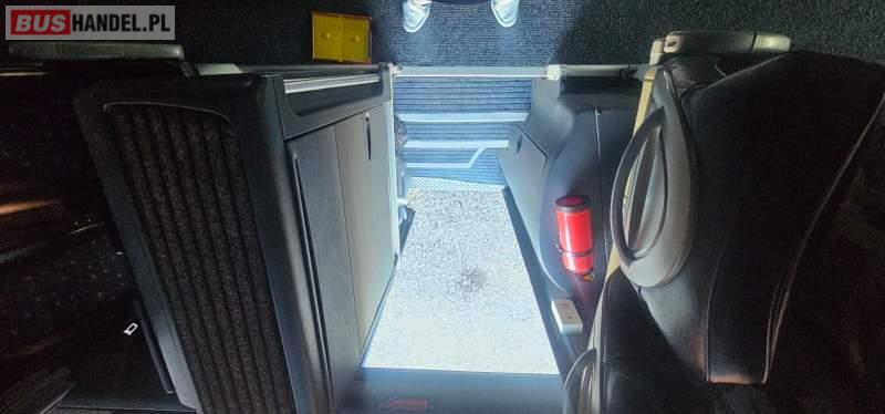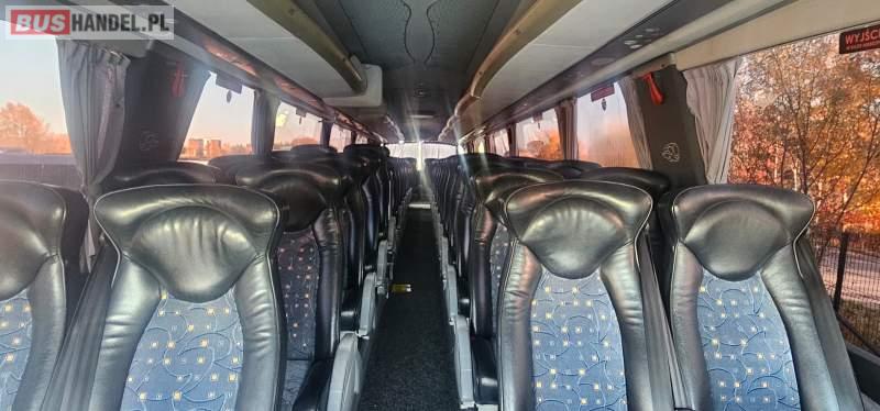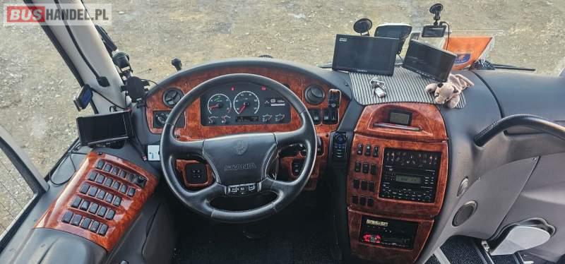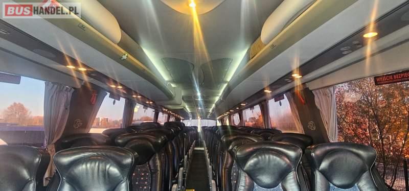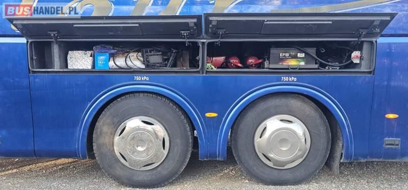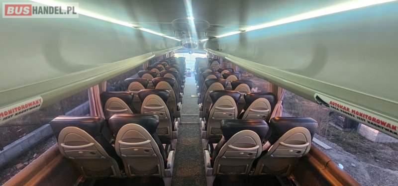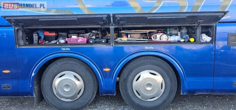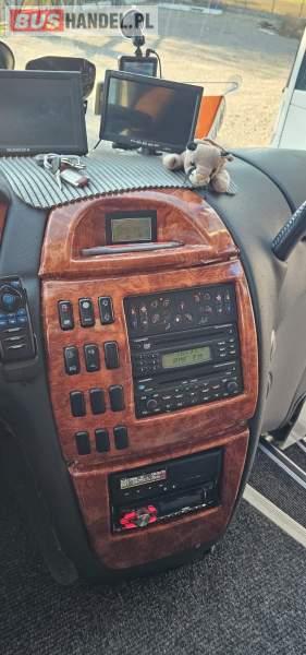 : klimatyzacja, video, WC, lodówka, caffebar, kabina sypialna, oświetlenie indywidualne, nawiewy dyszowe, stoliczki, siateczki, ABS, ASR, tempomat, retarder, telefon, nawigacja, CD, mikrofon, radio, fotele odchylane i rozsuwane, sejf, regulacja wysokości nadwozia, centralny zamek, podwójne szyby boczne, wspomaganie kierownicy, elektryczne lusterka, ogrzewanie stacjonarne, DVD, hak holowniczy, ESP