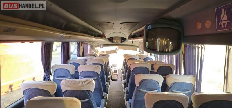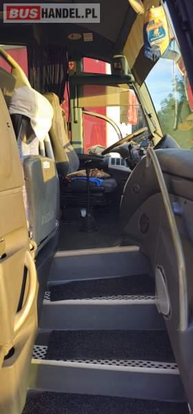 : klimatyzacja, video, lodówka, oświetlenie indywidualne, nawiewy dyszowe, podnóżki, stoliczki, siateczki, ABS, ASR, tempomat, retarder, telefon, nawigacja, CD, mikrofon, radio, fotele odchylane i rozsuwane, sejf, regulacja wysokości nadwozia, centralny zamek, podwójne szyby boczne, wspomaganie kierownicy, elektryczne lusterka, ogrzewanie stacjonarne, DVD, ESP