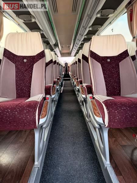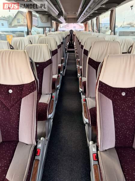 : klimatyzacja, video, WC, lodówka, caffebar, oświetlenie indywidualne, nawiewy dyszowe, stoliczki, siateczki, ABS, ASR, tempomat, retarder, CD, mikrofon, fotele odchylane i rozsuwane, regulacja wysokości nadwozia, centralny zamek, podwójne szyby boczne, wspomaganie kierownicy, elektryczne lusterka, ogrzewanie stacjonarne, DVD, ESP