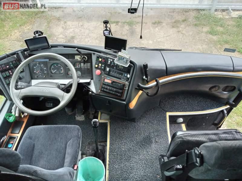 : lodówka, caffebar, kabina sypialna, oświetlenie indywidualne, nawiewy dyszowe, ABS, ASR, retarder, nawigacja, CD, podnóżki, mikrofon, klimatyzacja, radio, sejf, regulacja wysokości nadwozia, centralny zamek, podwójne szyby boczne, elektryczne lusterka, fotele odchylane i rozsuwane, DVD, ogrzewanie stacjonarne, hak holowniczy, ESP