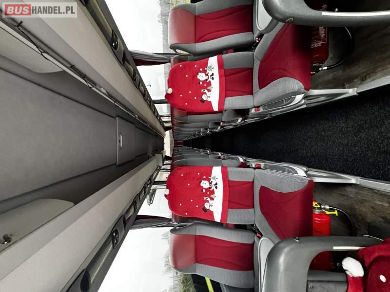 : klimatyzacja, video, WC, lodówka, caffebar, oświetlenie indywidualne, nawiewy dyszowe, podnóżki, stoliczki, siateczki, ABS, ASR, tempomat, retarder, telefon, nawigacja, CD, mikrofon, radio, fotele odchylane i rozsuwane, sejf, regulacja wysokości nadwozia, centralny zamek, podwójne szyby boczne, wspomaganie kierownicy, aluminiowe felgi, elektryczne lusterka, ogrzewanie stacjonarne, DVD, hak holowniczy, ESP