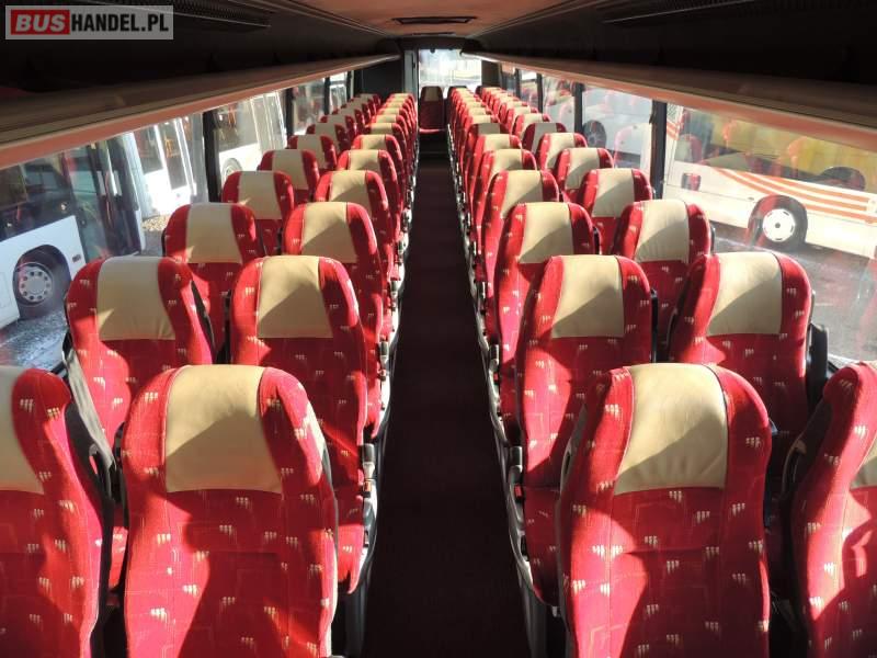 : klimatyzacja, WC, oświetlenie indywidualne, nawiewy dyszowe, ABS, ASR, retarder, CD, radio, fotele odchylane i rozsuwane, centralny zamek, podwójne szyby boczne, wspomaganie kierownicy, elektryczne lusterka, ogrzewanie stacjonarne, DVD