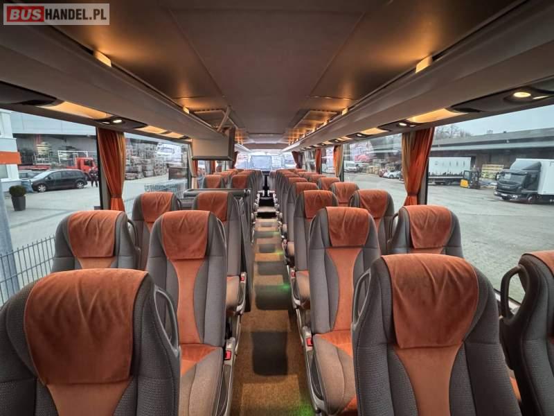 : video, WC, lodówka, caffebar, kabina sypialna, fotele odchylane, oświetlenie indywidualne, nawiewy dyszowe, siateczki, ABS, ASR, tempomat, retarder, nawigacja, CD, podnóżki, stoliczki, klimatyzacja, radio, wyświetlacz matrix, regulacja wysokości nadwozia, centralny zamek, podwójne szyby boczne, wspomaganie kierownicy, elektryczne lusterka, fotele odchylane i rozsuwane, DVD, ogrzewanie stacjonarne, hak holowniczy, ESP