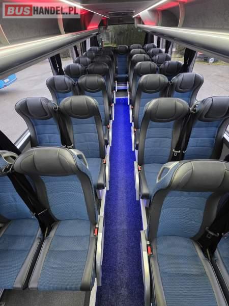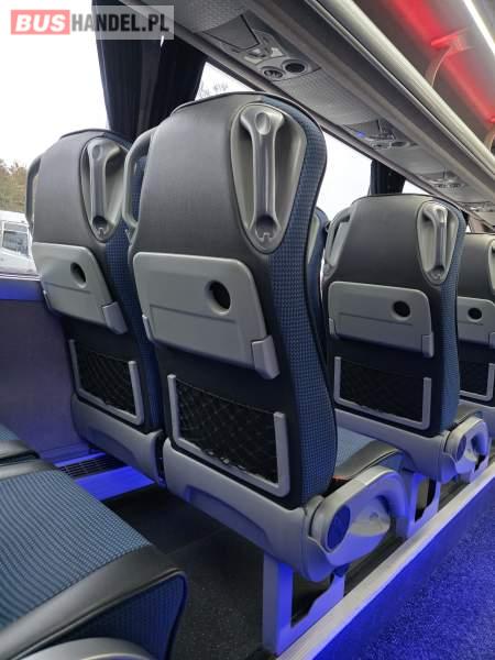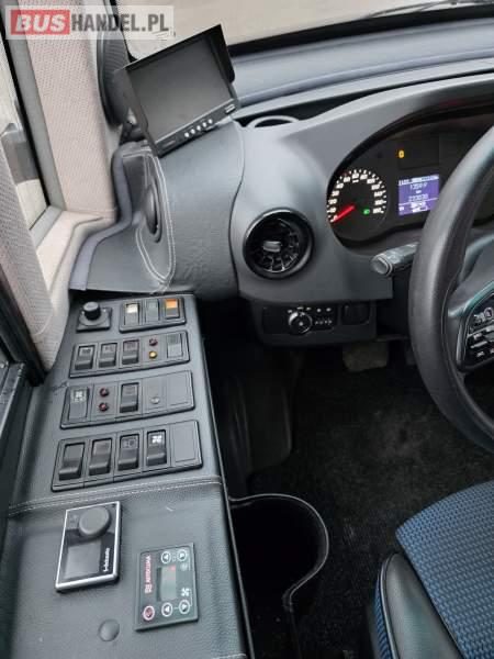 : klimatyzacja, lodówka, oświetlenie indywidualne, nawiewy dyszowe, fotele odchylane, podnóżki, stoliczki, siateczki, ABS, ASR, tempomat, retarder, mikrofon, radio, fotele odchylane i rozsuwane, regulacja wysokości nadwozia, centralny zamek, podwójne szyby boczne, wspomaganie kierownicy, elektryczne lusterka, ogrzewanie stacjonarne, DVD