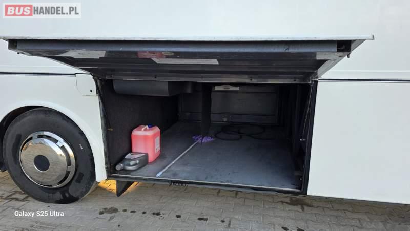 : video, WC, lodówka, caffebar, kabina sypialna, oświetlenie indywidualne, nawiewy dyszowe, siateczki, ABS, ASR, tempomat, retarder, telefon, podnóżki, stoliczki, mikrofon, klimatyzacja, radio, sejf, regulacja wysokości nadwozia, podwójne szyby boczne, wspomaganie kierownicy, elektryczne lusterka, DVD, ogrzewanie stacjonarne