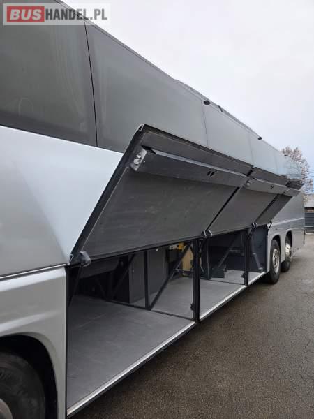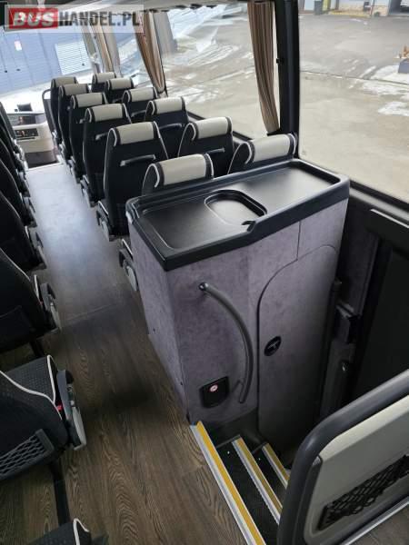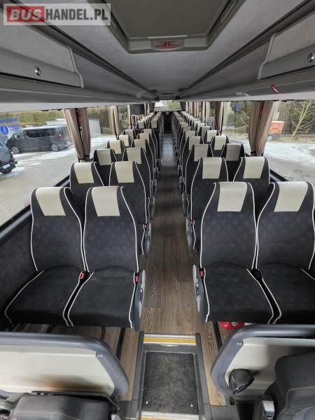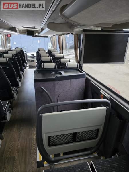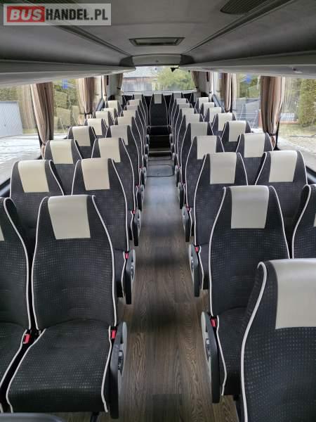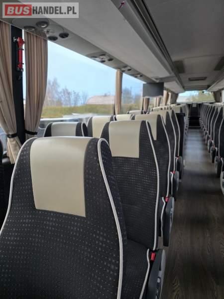 : WC, lodówka, caffebar, kabina sypialna, oświetlenie indywidualne, nawiewy dyszowe, siateczki, ABS, ASR, tempomat, retarder, podnóżki, stoliczki, mikrofon, klimatyzacja, radio, sejf, regulacja wysokości nadwozia, centralny zamek, podwójne szyby boczne, wspomaganie kierownicy, elektryczne lusterka, fotele odchylane i rozsuwane, DVD, ogrzewanie stacjonarne, ESP