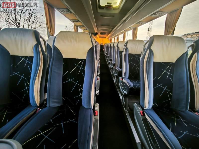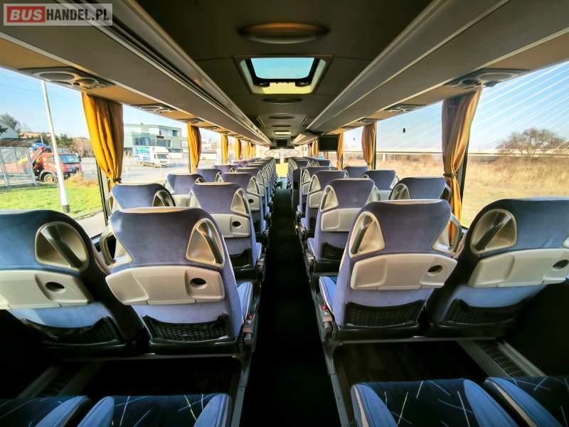 : WC, lodówka, caffebar, kabina sypialna, oświetlenie indywidualne, nawiewy dyszowe, siateczki, ABS, ASR, tempomat, retarder, nawigacja, podnóżki, stoliczki, mikrofon, klimatyzacja, radio, sejf, regulacja wysokości nadwozia, centralny zamek, wspomaganie kierownicy, elektryczne lusterka, aluminiowe felgi, fotele odchylane i rozsuwane, DVD, ogrzewanie stacjonarne, hak holowniczy, ESP