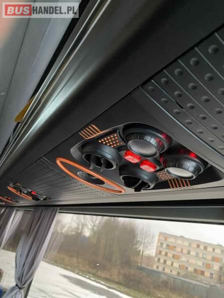 : fotele odchylane, nawiewy dyszowe, ABS, ASR, retarder, mikrofon, klimatyzacja, centralny zamek, ogrzewanie stacjonarne
