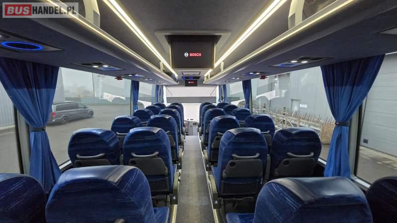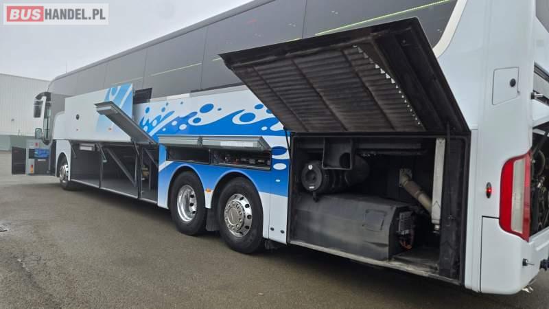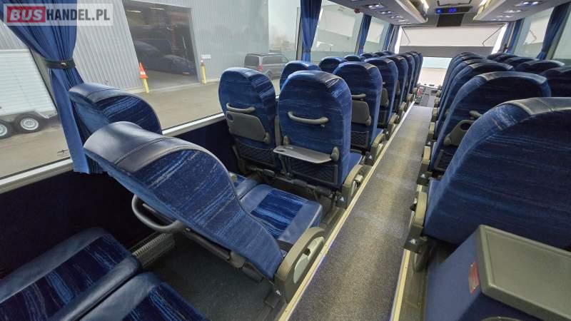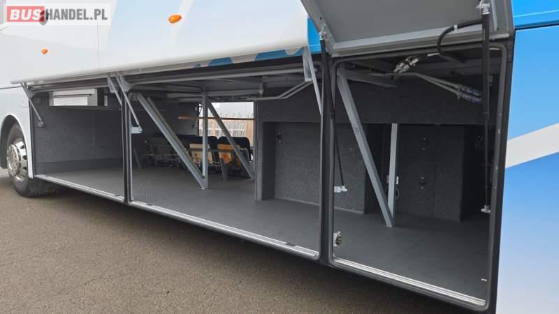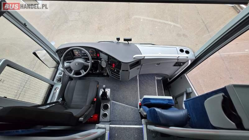 : klimatyzacja, WC, lodówka, caffebar, kabina sypialna, oświetlenie indywidualne, nawiewy dyszowe, podnóżki, stoliczki, siateczki, ABS, ASR, tempomat, retarder, mikrofon, radio, fotele odchylane i rozsuwane, sejf, regulacja wysokości nadwozia, centralny zamek, podwójne szyby boczne, wspomaganie kierownicy, aluminiowe felgi, elektryczne lusterka, ogrzewanie stacjonarne, DVD, ESP