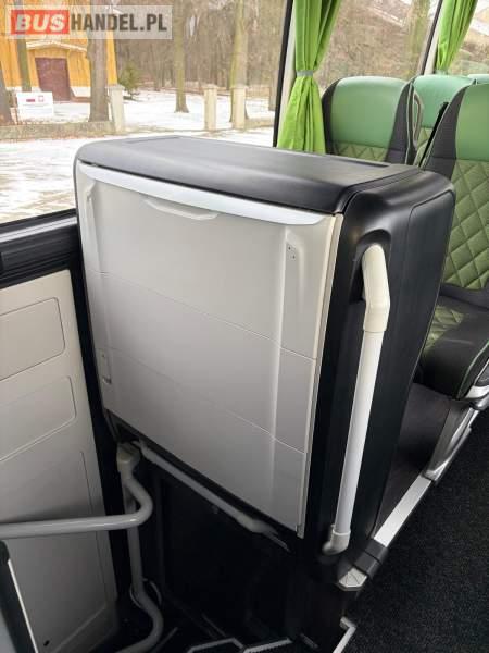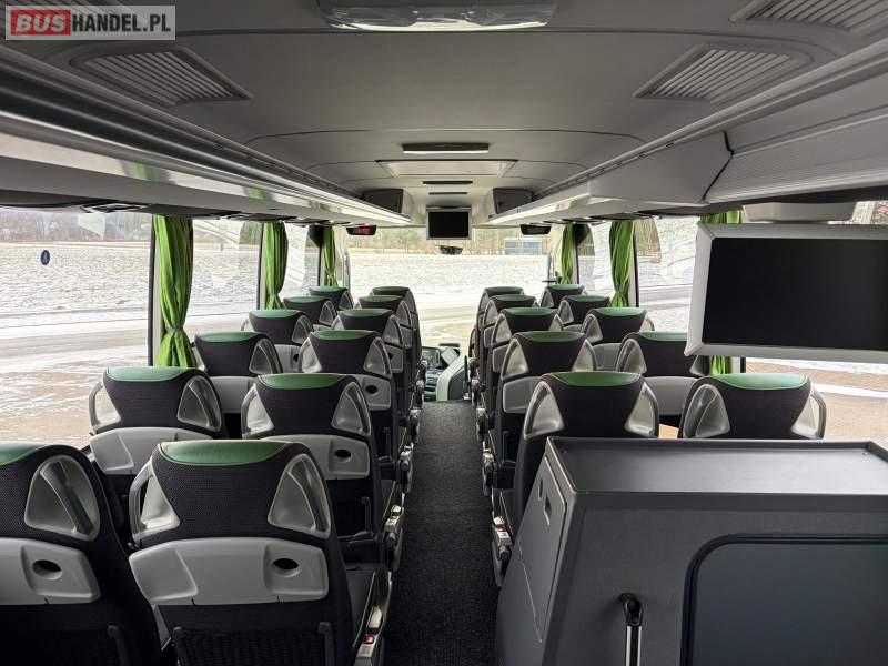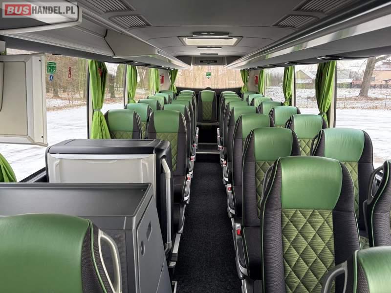 : klimatyzacja, WC, lodówka, caffebar, oświetlenie indywidualne, nawiewy dyszowe, podnóżki, stoliczki, siateczki, ABS, ASR, tempomat, retarder, nawigacja, CD, mikrofon, radio, fotele odchylane i rozsuwane, sejf, regulacja wysokości nadwozia, centralny zamek, podwójne szyby boczne, wspomaganie kierownicy, elektryczne lusterka, ogrzewanie stacjonarne, DVD, ESP