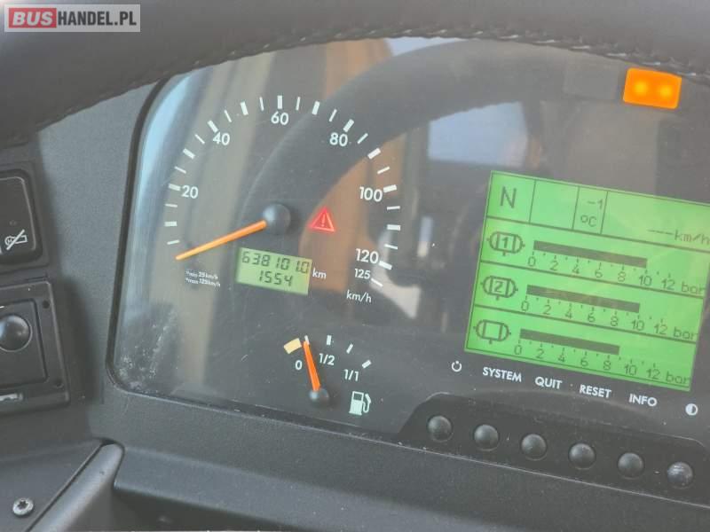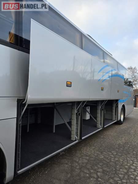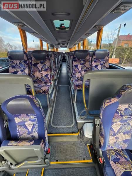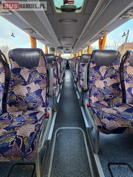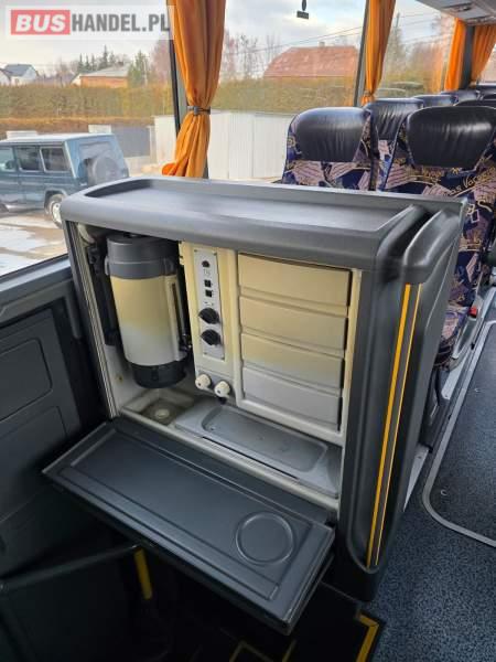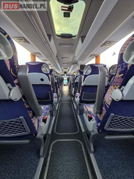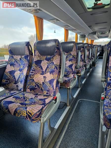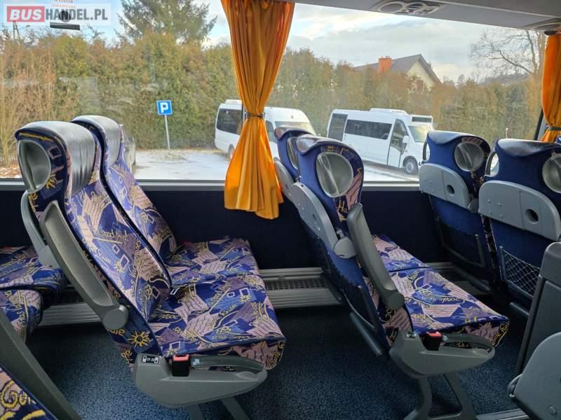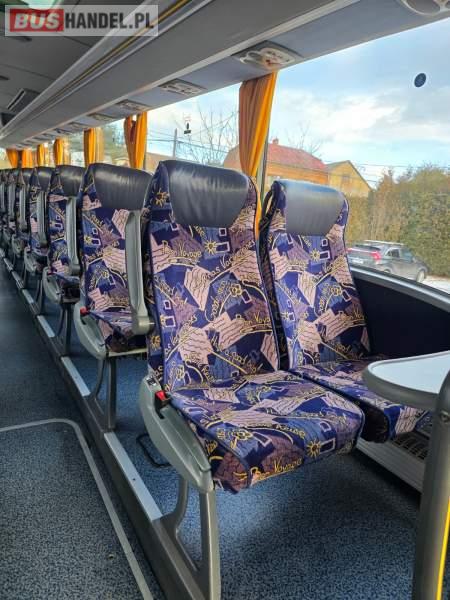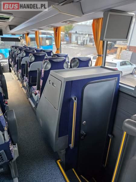 : WC, lodówka, caffebar, kabina sypialna, oświetlenie indywidualne, nawiewy dyszowe, siateczki, ABS, ASR, tempomat, retarder, podnóżki, stoliczki, mikrofon, klimatyzacja, radio, sejf, regulacja wysokości nadwozia, centralny zamek, podwójne szyby boczne, wspomaganie kierownicy, elektryczne lusterka, aluminiowe felgi, fotele odchylane i rozsuwane, DVD, ogrzewanie stacjonarne