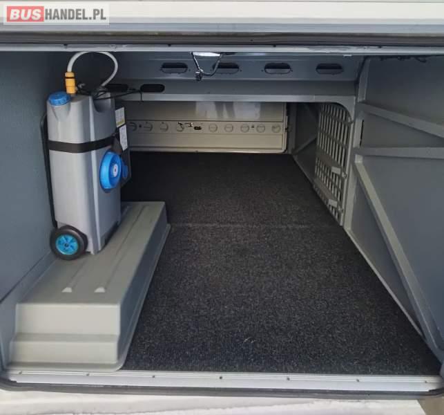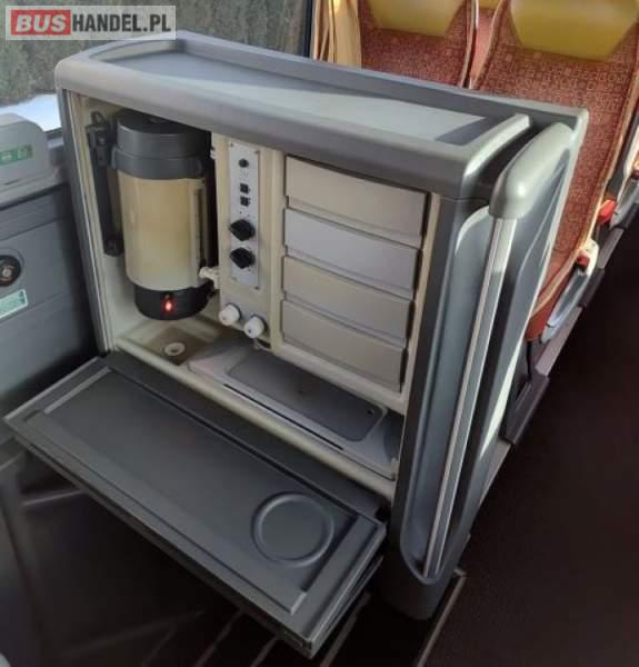 : WC, lodówka, caffebar, oświetlenie indywidualne, nawiewy dyszowe, siateczki, ABS, ASR, tempomat, retarder, CD, podnóżki, stoliczki, mikrofon, klimatyzacja, radio, sejf, regulacja wysokości nadwozia, centralny zamek, podwójne szyby boczne, wspomaganie kierownicy, elektryczne lusterka, fotele odchylane i rozsuwane, DVD, ogrzewanie stacjonarne, ESP