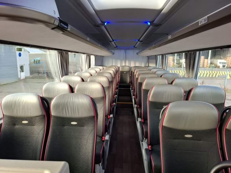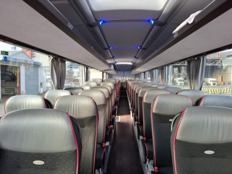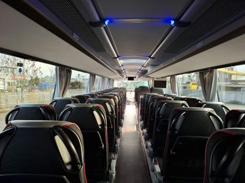 : WC, lodówka, caffebar, oświetlenie indywidualne, nawiewy dyszowe, siateczki, ABS, ASR, tempomat, retarder, nawigacja, CD, podnóżki, stoliczki, mikrofon, klimatyzacja, radio, sejf, regulacja wysokości nadwozia, centralny zamek, podwójne szyby boczne, wspomaganie kierownicy, elektryczne lusterka, fotele odchylane i rozsuwane, DVD, ogrzewanie stacjonarne, hak holowniczy, ESP